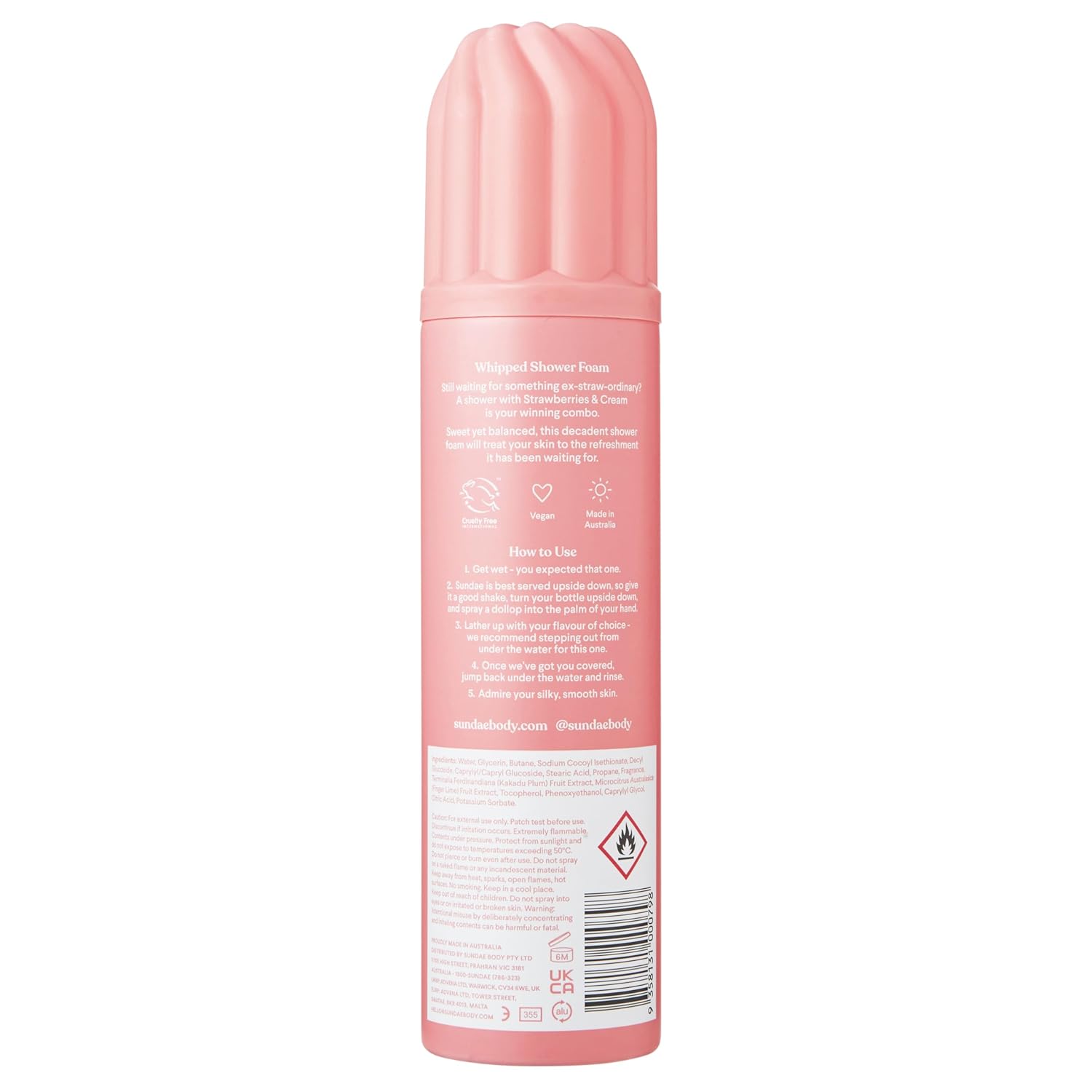 - Deliciously scented Strawberry Whipped Shower Foam with Kakadu Plum & Finger Lime