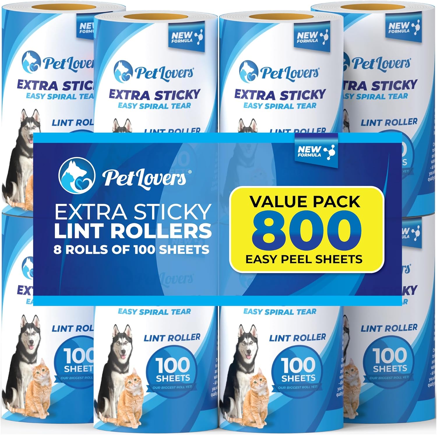 PetLovers Extra Sticky Lint Roller Mega Value Set for Pet Hair Removal, Dog and Cat Lint Remover (8 Pack Refills)