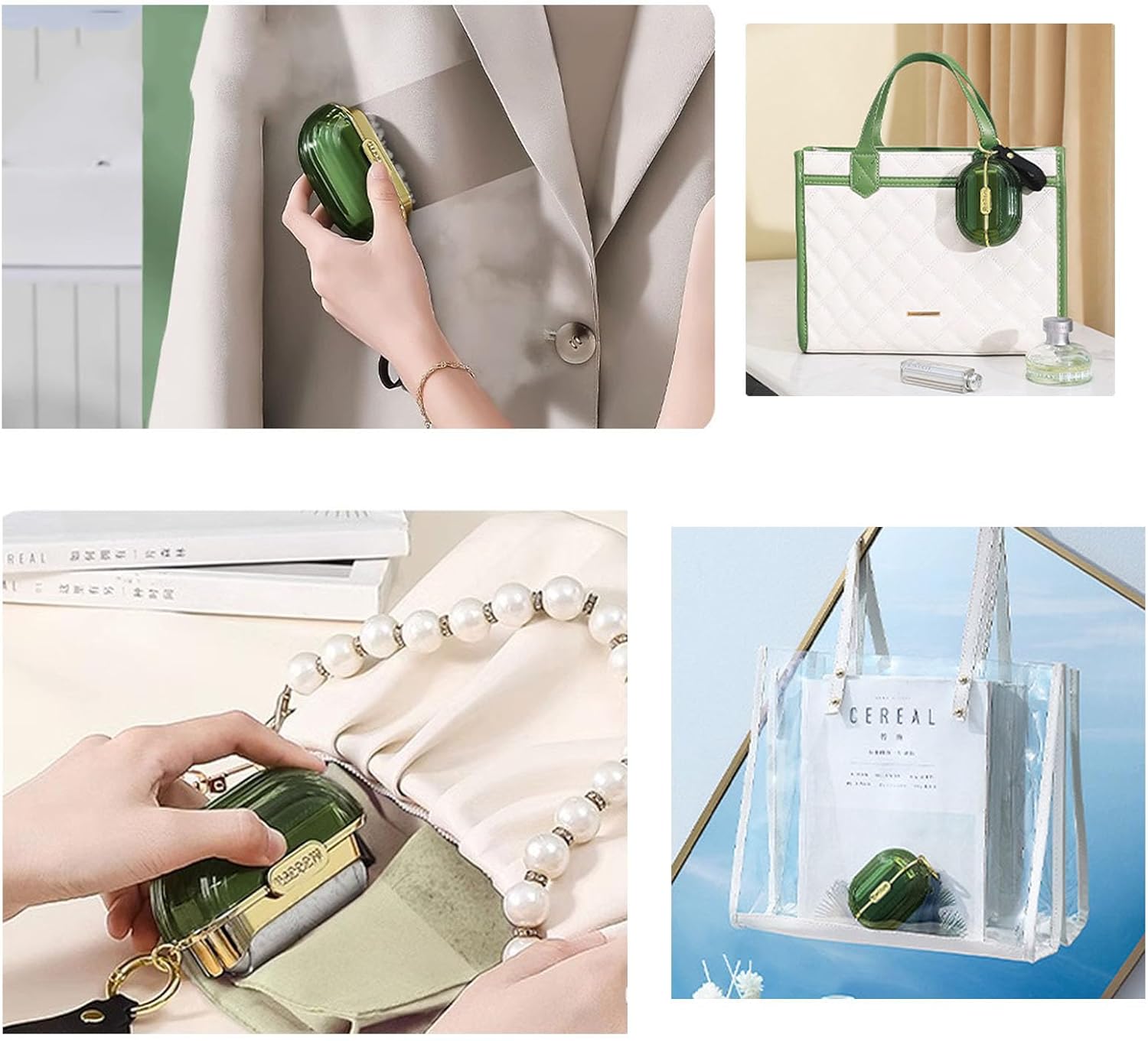 Handy Double-Sided Travel Lint Roller with Hand Strap, 7-Fill Luxury Clothing Bag Dust Fluff Adhesive Reusable Mini Extra Adhesive Dog Cat Pet Adhesive, Small Pocket Reusable Lint (Green)