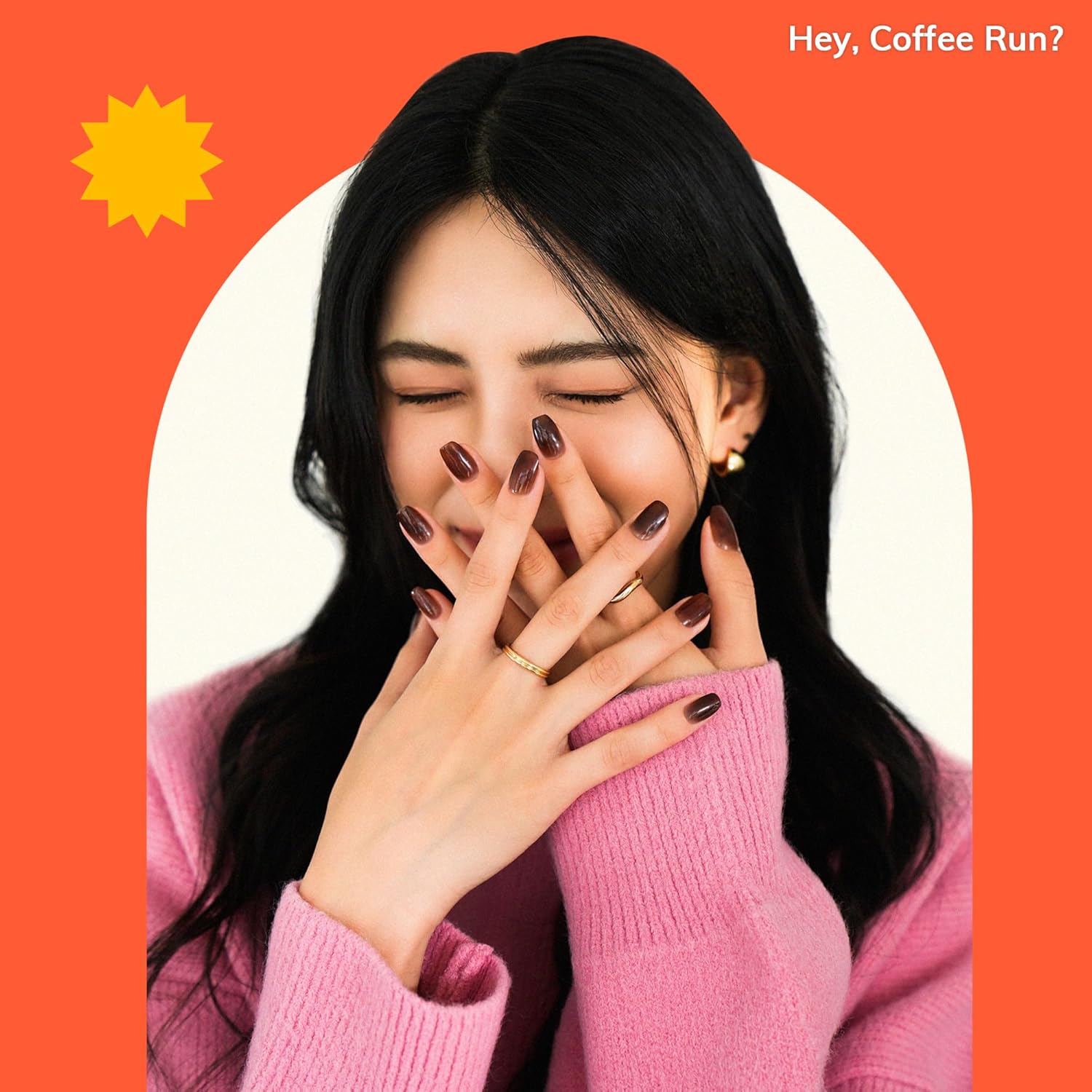 Semi Cured Gel Nail Strips | No LED Lamp Needed | Marble, Brown | Easy Apply & Remove, Salon Quality | Includes 28 Strips, 1 Prep Pads, Nail File & Wooden stick - Hey, Coffee Run?