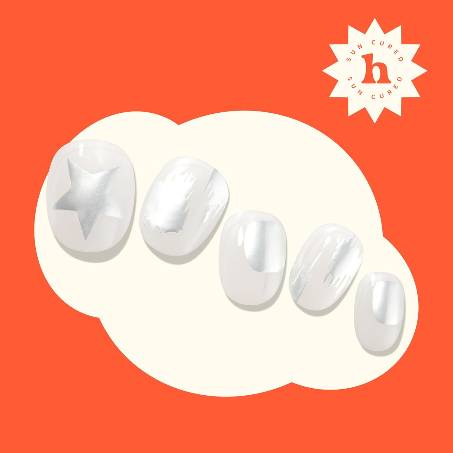 Semi Cured Gel Nail Strips | No LED Lamp Needed | Glitter, White, Spring | Easy Apply & Remove, Salon Quality |Includes 28 Strips, 1 Prep Pads, Nail File & Wooden stick - Hey, Lunch & Pictures?