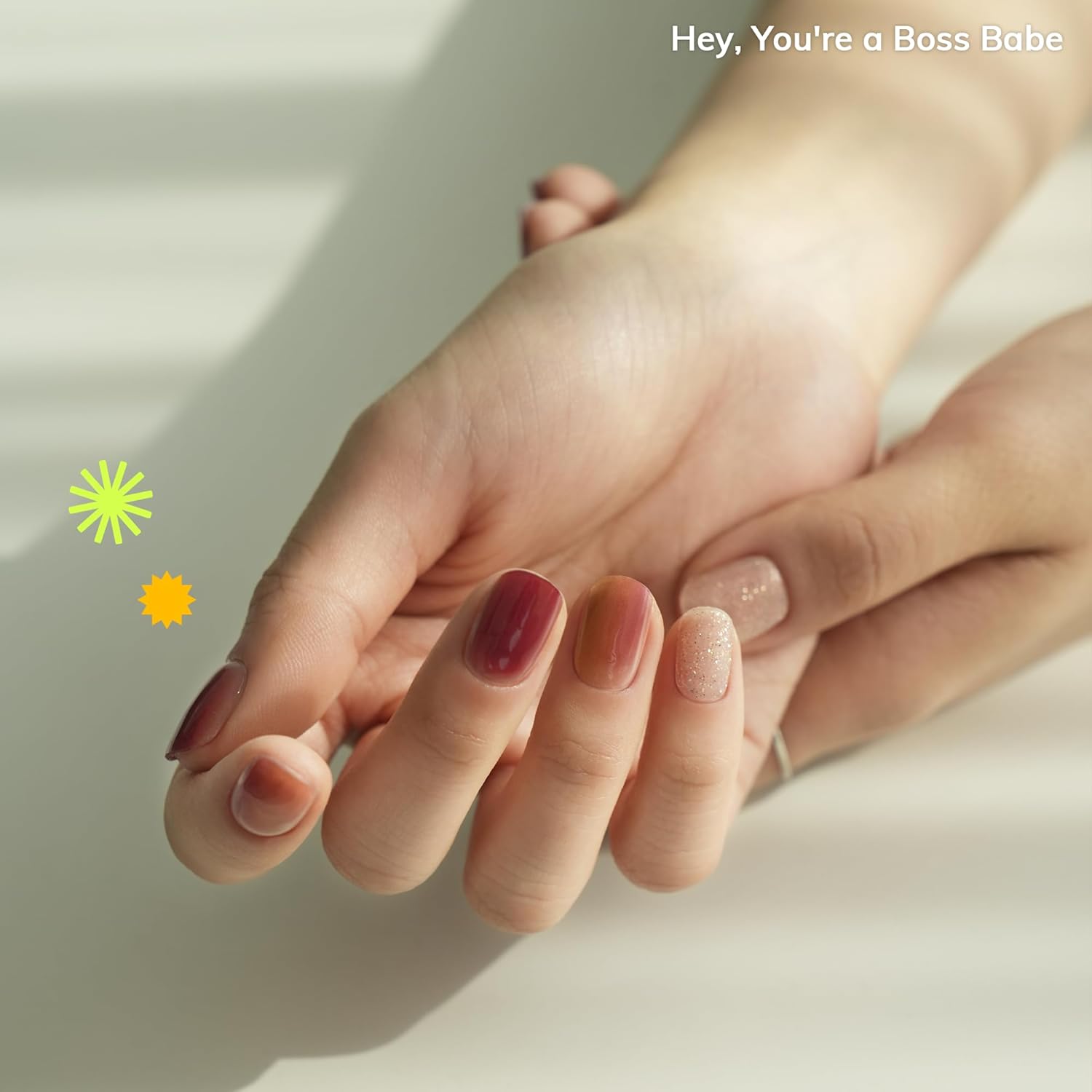 - Simple and fast cure! NO LED Lamp needed! Sun-cured Gel Nails - Simply let it cure by itself under the sunlight (UV Index 3+). **Curing time under sunlight can vary depending on various factors such as weather conditions, environmental factors, and humidity levels. No natural sunlight? No worries. Cure it under UV/LED lamp just for 5 seconds!