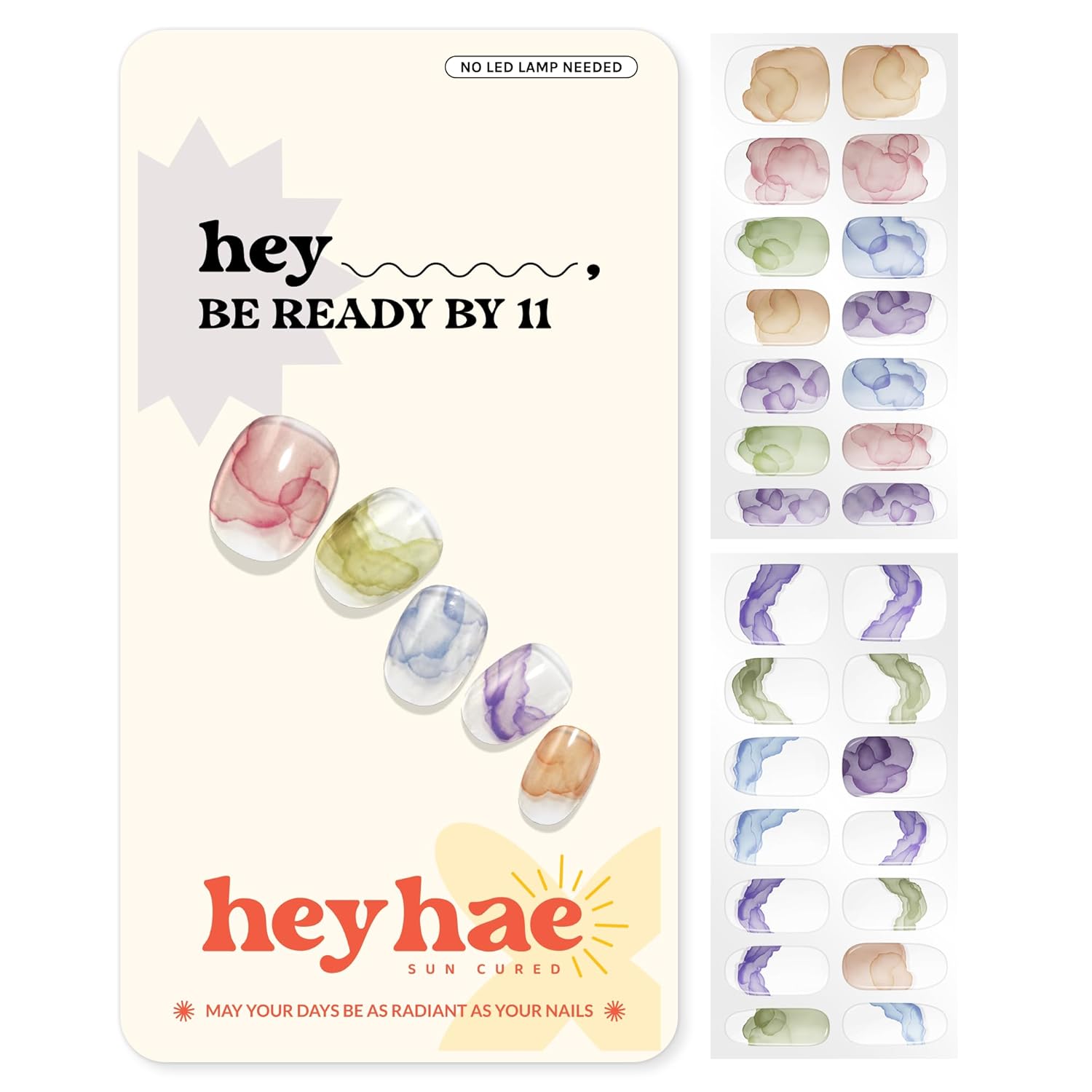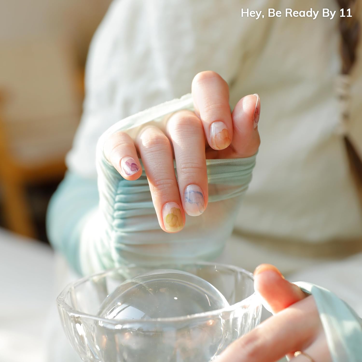 Semi Cured Gel Nail Strips | No LED Lamp Needed | Marble, Spring | Easy Apply & Remove, Salon Quality | Includes 28 Strips, 1 Prep Pads, Nail File & Wooden Stick - Hey, Be Ready by 11