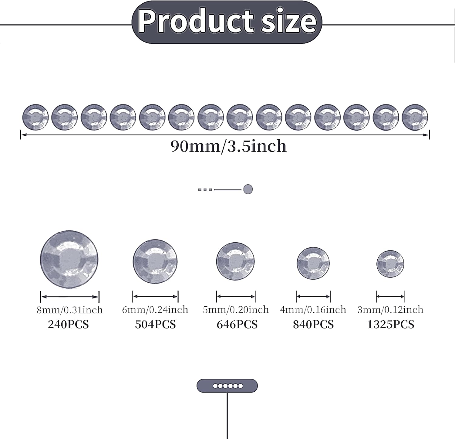 - 💎[ Value Set ] Package contains 5 sheets rhinestone stickers, 3555 pieces nail gems in 5 sizes, including 1325pcs of 3mm, 840pcs of 4mm, 646pcs of 5mm, 504pcs of 6mm, 240pcs of 8mm, enough to meet your various makeup and craft projects needs.