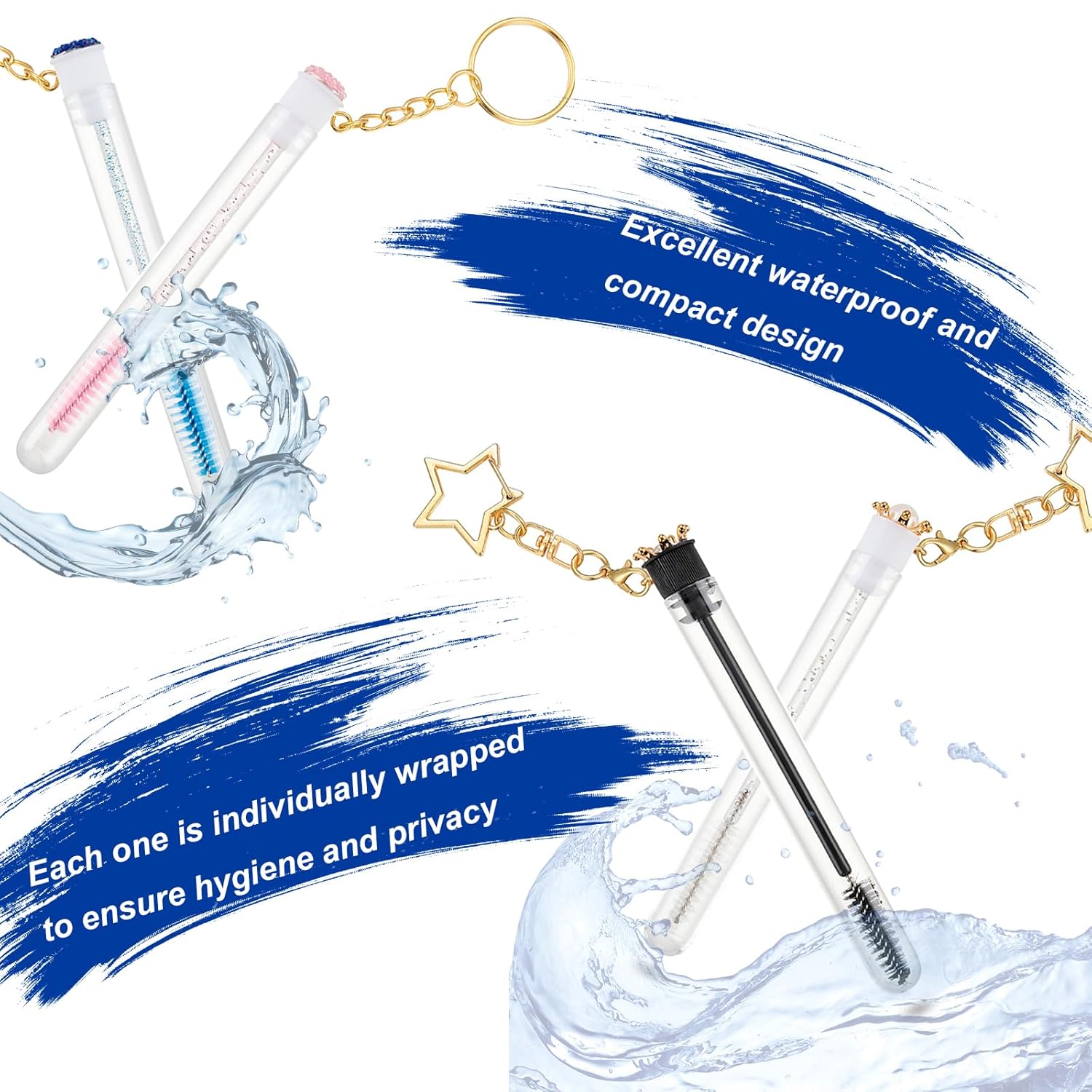 Upgrade 48 Pieces Disposable Mascara Wands Set,Extremely Durable Diamond Mascara for Women and Girls- Include 24 Pcs Crystal Lash Spoolies Brush and 24 Pcs Reusable Keychain Empty Eyelash Brush Tubes
