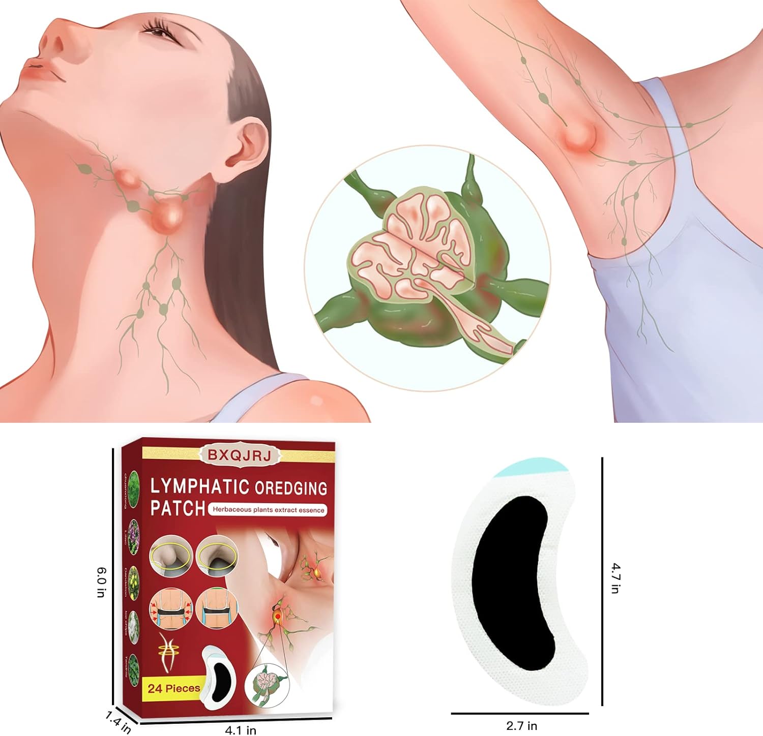 24Pcs/Box Herbal Lymph Nodes Patch,Lymphatic Drainage Patch/Patches,Herbal Lymphatic Drainage Care Patch,Neck Lymph Nodes Patch, Lymphatic Massage for Men and Women