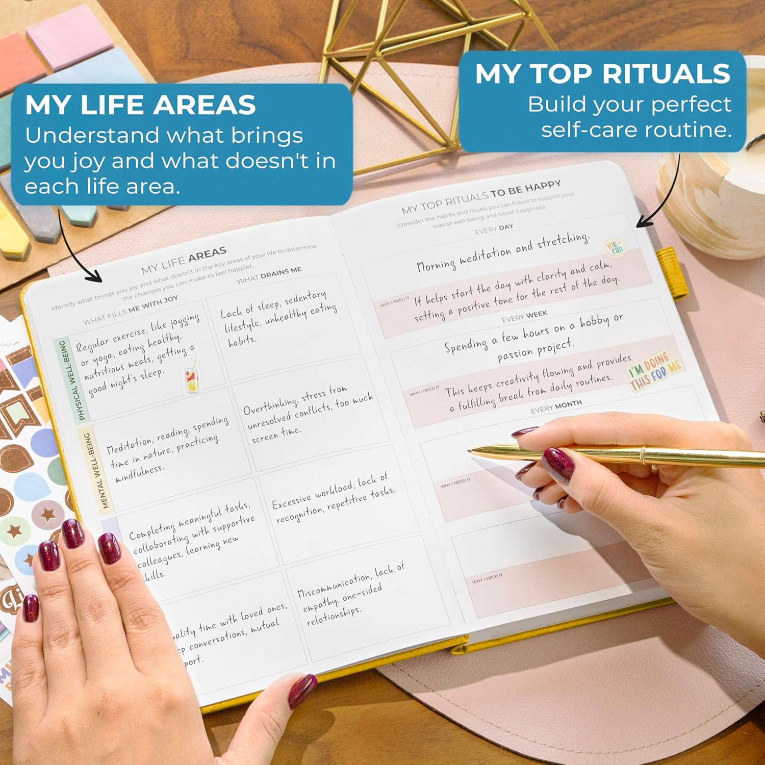 - CULTIVATE HAPPINESS THROUGH JOURNALING – This 6-month journal for women with prompts is designed to help you practice gratitude, explore your thoughts and feelings, and boost self-awareness to feel happier every day.