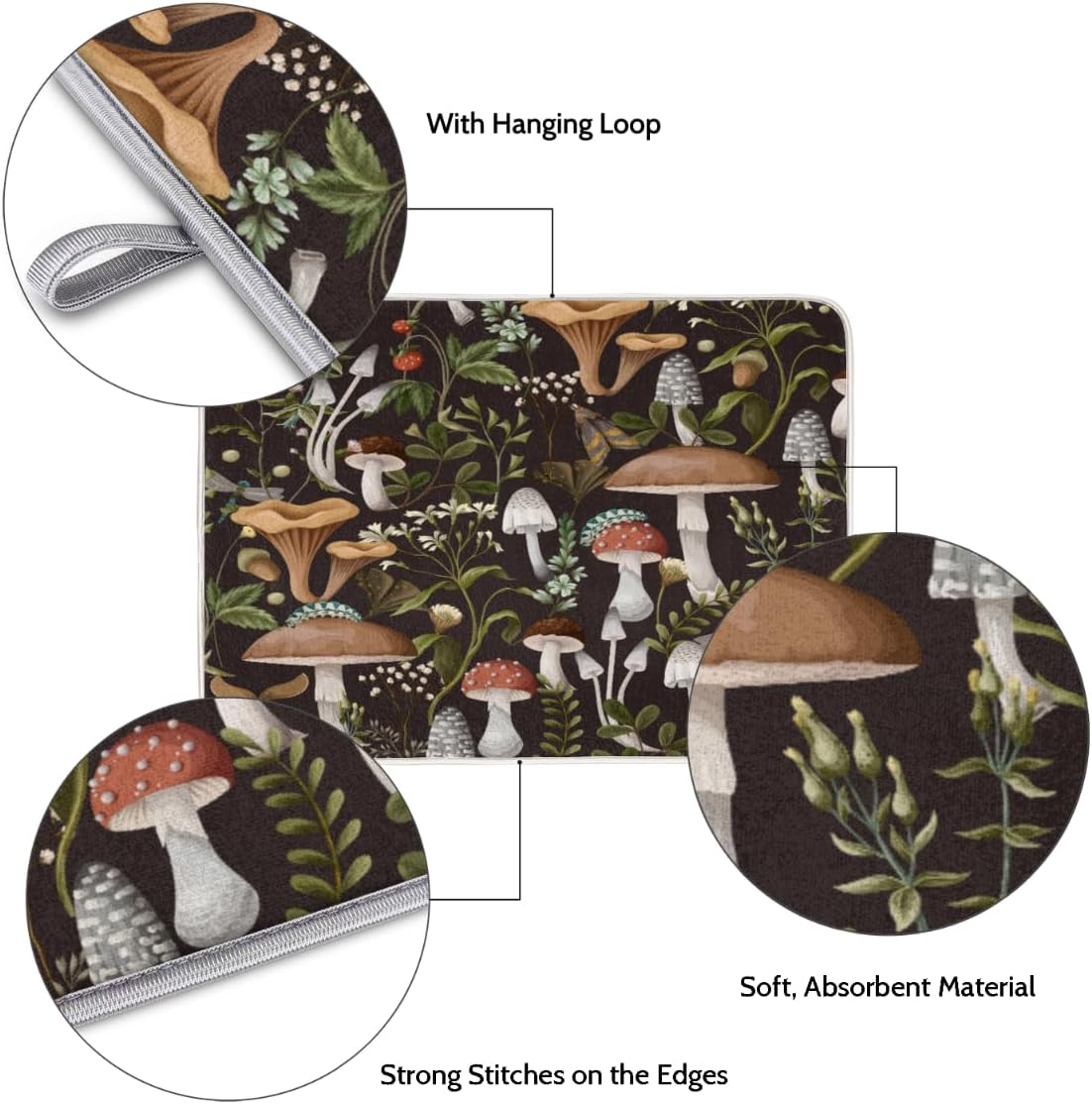 Hexteria Mushroom Dish Drying Mat For Kitchen Counter 16 X 18 Inch, Microfiber Absorbent Dish Drainer Mat for Countertops Protector Pad