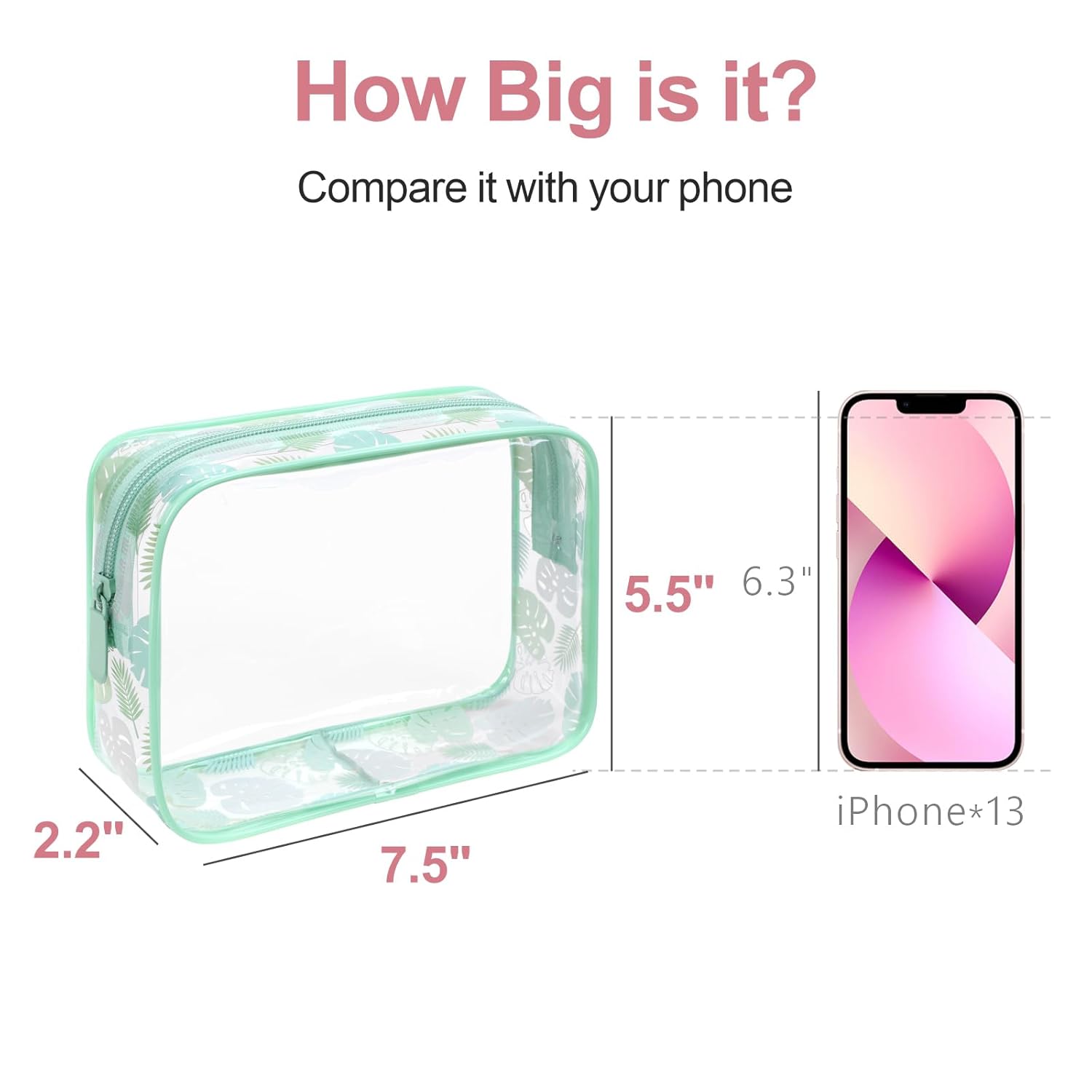- High-Quality, Durable: The clear makeup bags keep the shape with reinforced boning. Smooth metal zipper for longevity, ensuring a secure seal that complies with TSA regulations for sealed bags. Wide opening for easy access. A net weight of only 0.7 lbs per bag, light and feelless