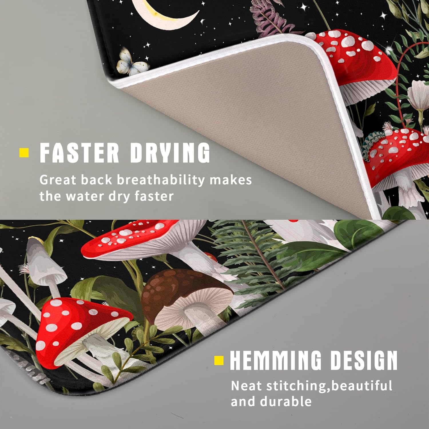 Red Mushroom Dish Drying Mat for Kitchen Counter Plant Leaves Drainer Mats Rack Holder Countertop Absorbent Microfiber Coffee Pads 16x18 Inch