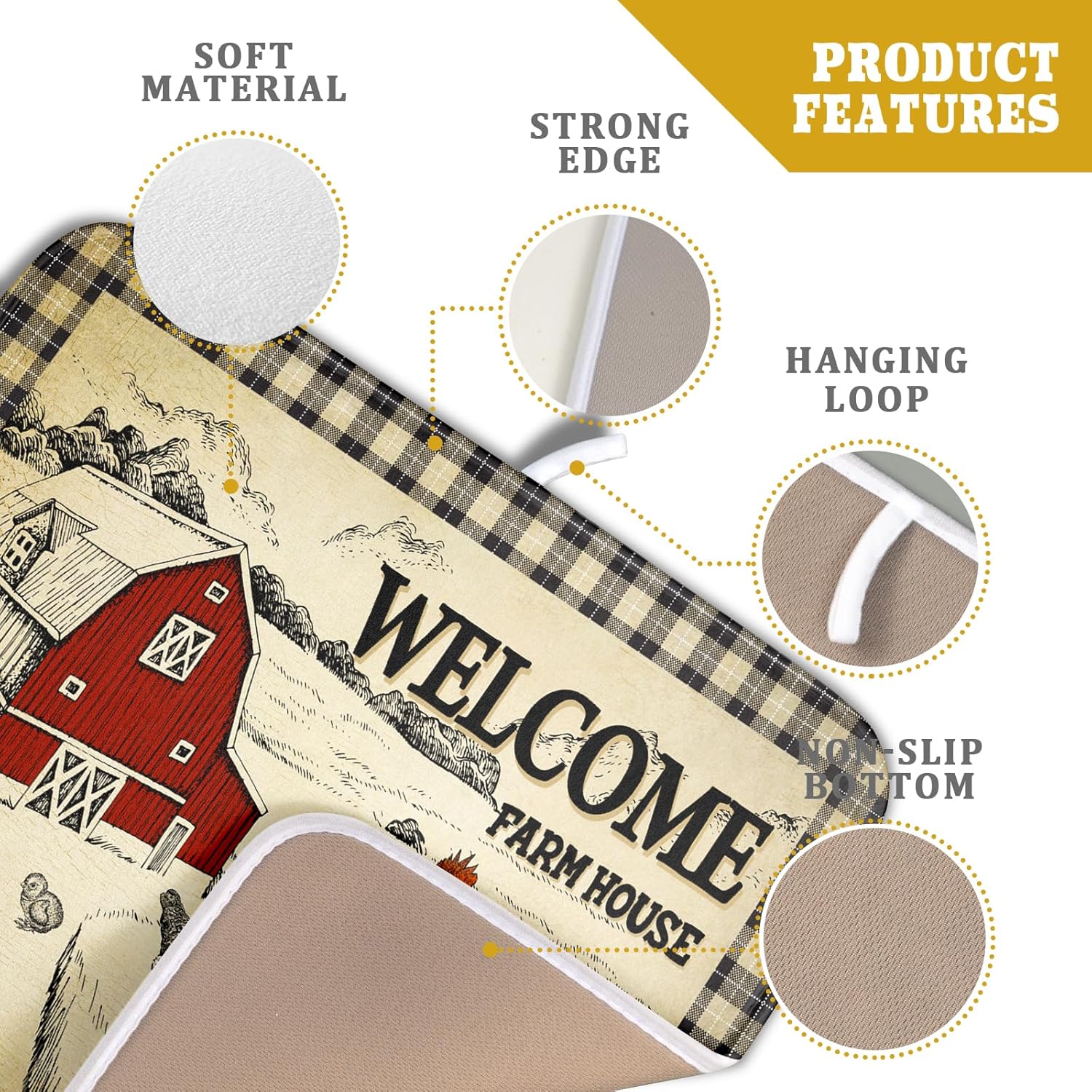 Farmhouse Rooster Dish Drying Mat 16x18 Inch Country Chicken Absorbent Dish Drainer Mat Reversible Countertops Protector Pad Kitchen Accessories