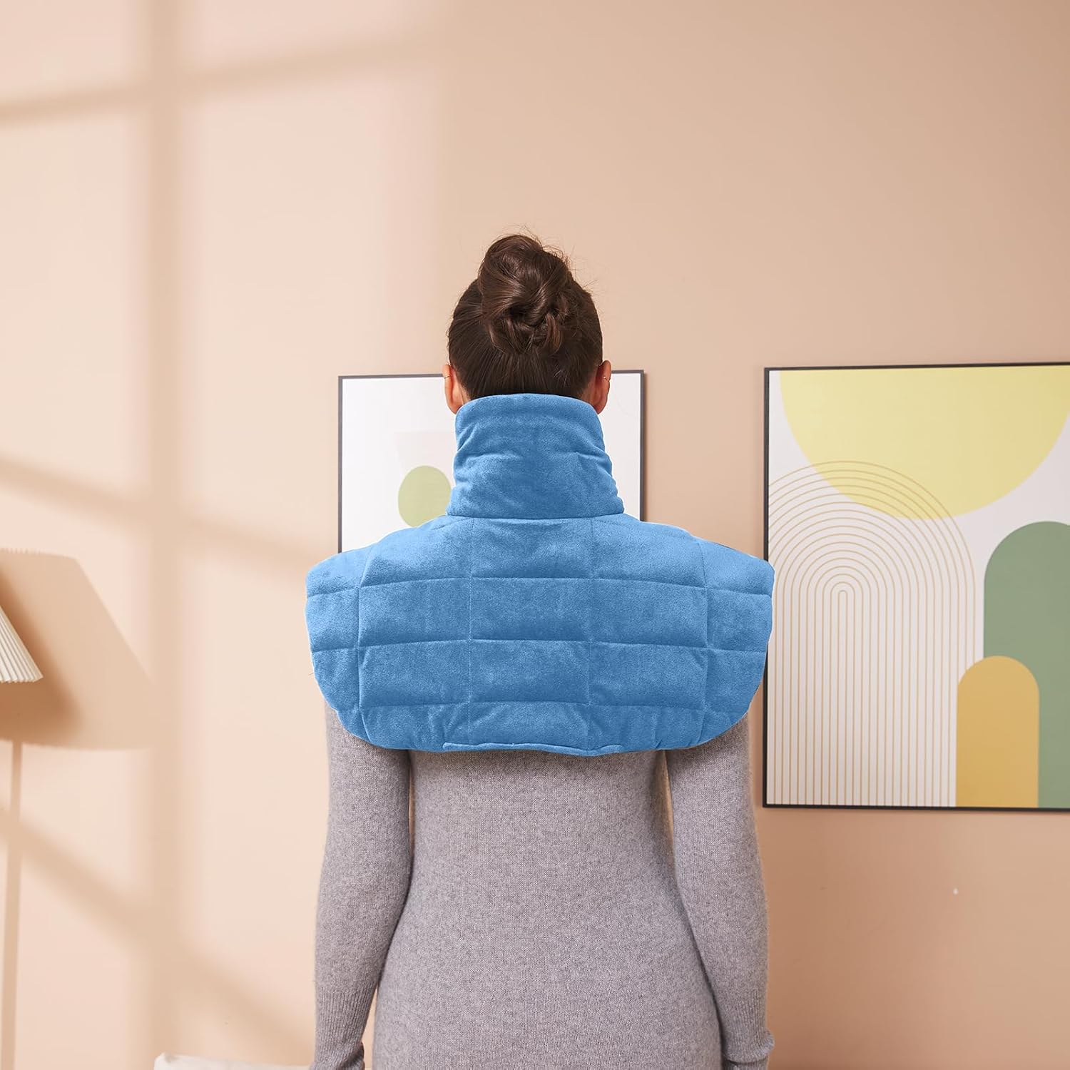Ambershine 19''x24'' Weighted Neck & Shoulder Heating Pad, 2.5lbs with 12 Temperature Settings& 4 Auto-Off Timers, Pain Relief for Neck/Shoulder/Back, Christmas Gifts for Women Men Mom Dad(Light Blue)