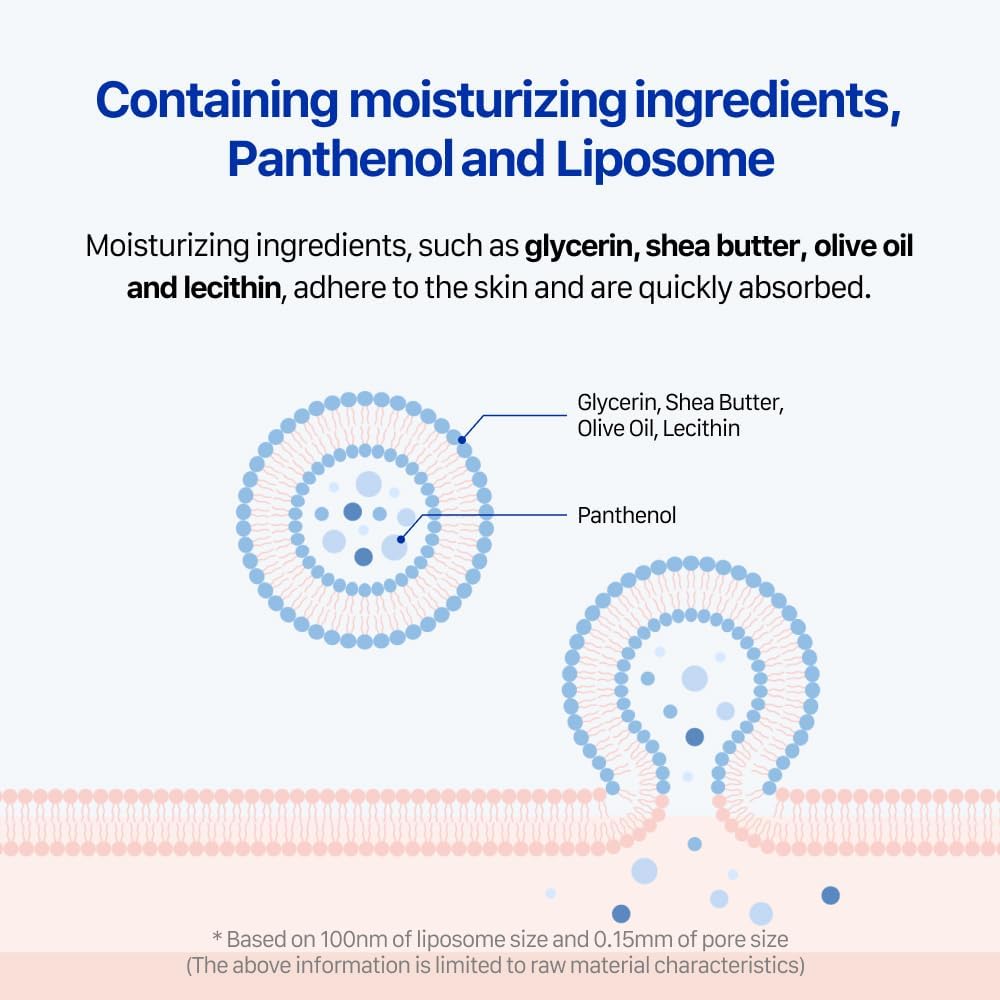 - LIPOSOME DELIVERY SYSTEM: Panthenol, olive oil, glycerin, and lecithin are quickly absorbed via liposome tech to nourish and protect skin efficiently.