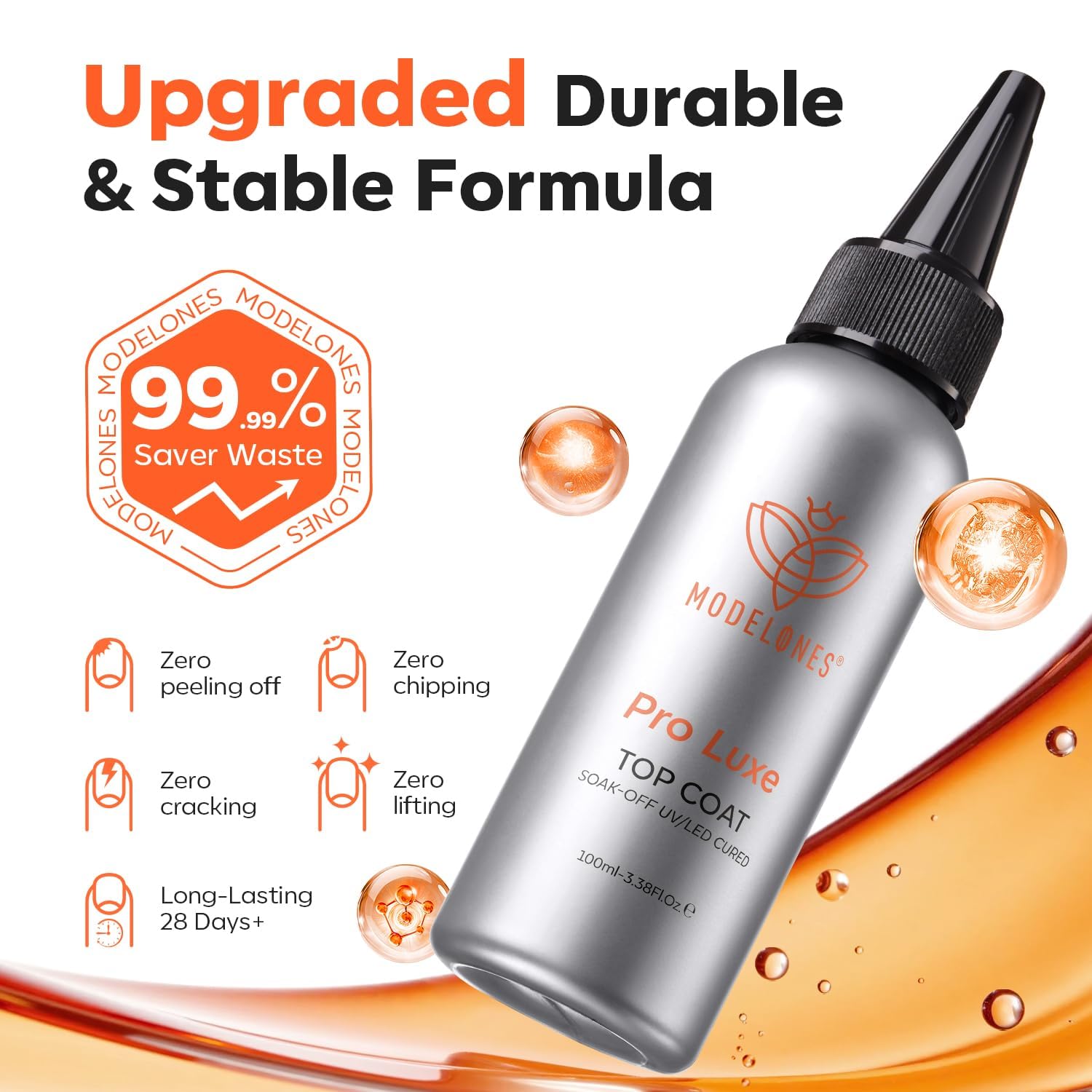 - Shiny Top Coat: You will get modelones 100ml Large Capacity no wipe gel top coat. Help to protect the nail surface, keeping the gel from peeling off, and keeping the nails in a long shine finish. Need to use U V/LED nail lamp curing.