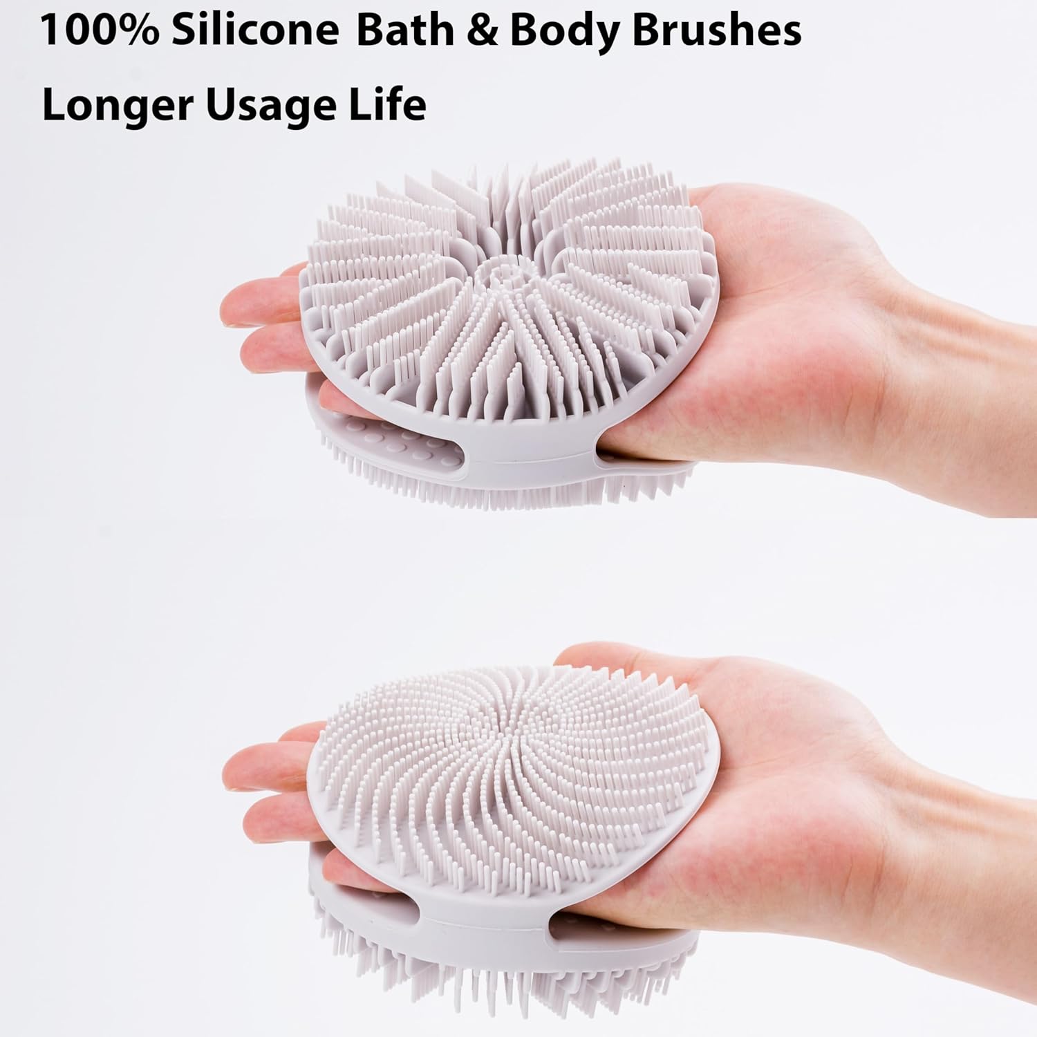 - Bath&Shower Brush with Better Design: 2 pc silicone body shampoo brushes included. The new design is not only optimized for better grip experience but also adds a hanging hole to make it easier to hang dry. Every time you take a shower or wash your hair using this silicone brush, you will enjoy a relaxing massage and feel refreshed.