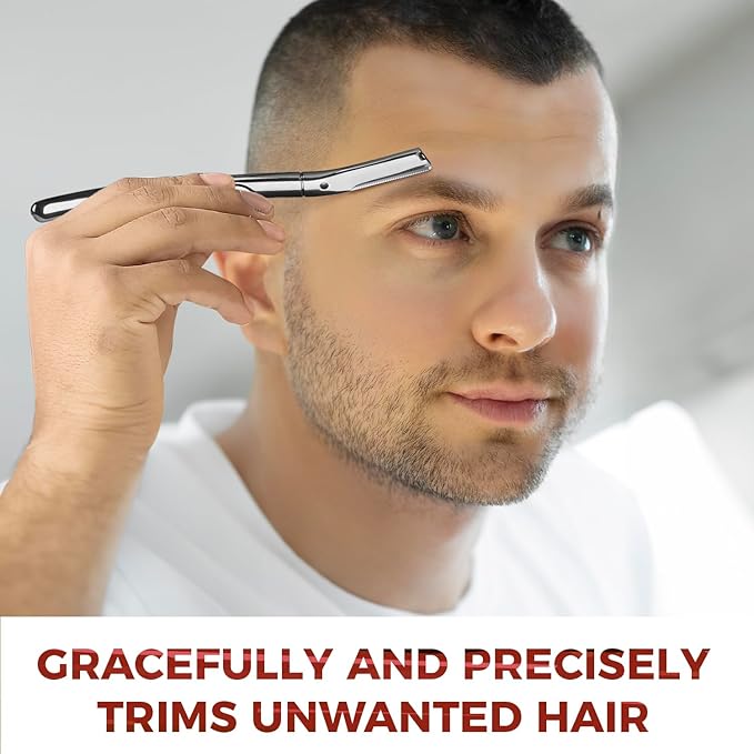 - STAINLESS STEEL PRECISION BLADE: These sharp blades have a cut-resistant design that makes them sharp, but also gentle and safe. They are specifically designed to deal with stubborn facial hairs to let you trim your brows easily.