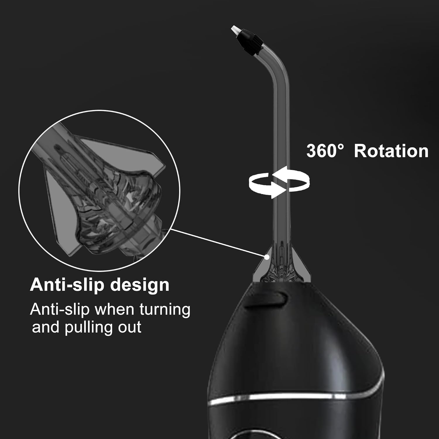 - 【How to Use】Press the nozzle replacement button on the top of the water flosser; Then carefully pull out the old nozzle and insert the new one into the nozzle slot.It is easy to install and replace.