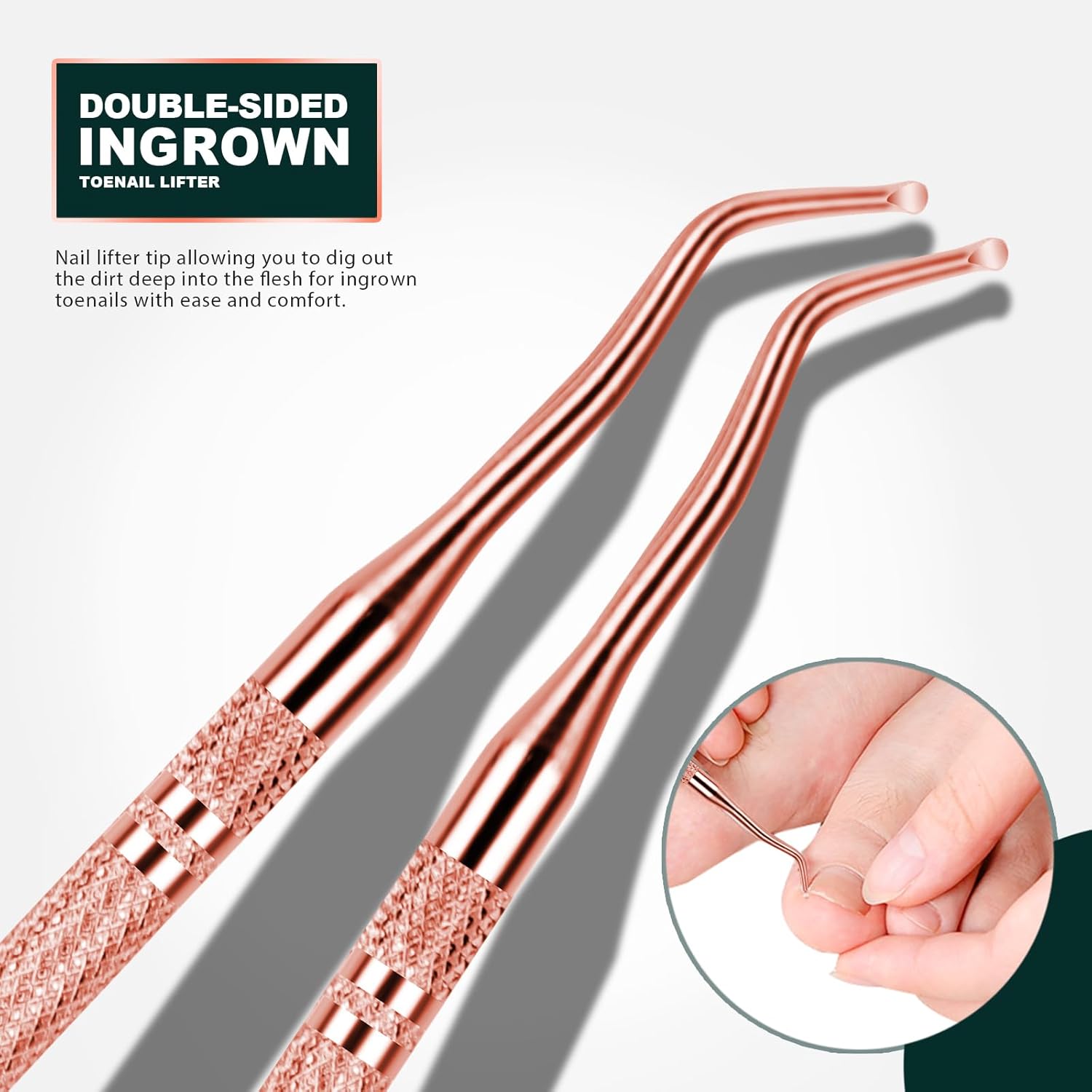 - Pain Relief Ingrown Toenail Tool: The ergonomically designed ingrown toenail file and toenail lifter meets all your needs of toenails in different shapes or thicknesses. The smooth surface has no rough edges allowing you to clean ingrown toenails with ease, and creates the right amount of pressure when press against the painful area