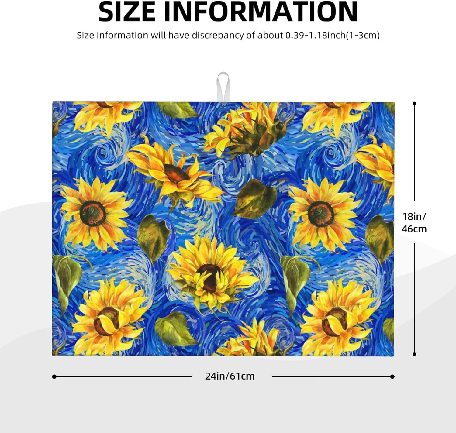 Starry Night Sunflower Blue Dish Drying Mat For Kitchen Counter Absorbent Large Kitchen Fast Dry Pad Reusable Washable Protector Rack Large Mat 18 X 24