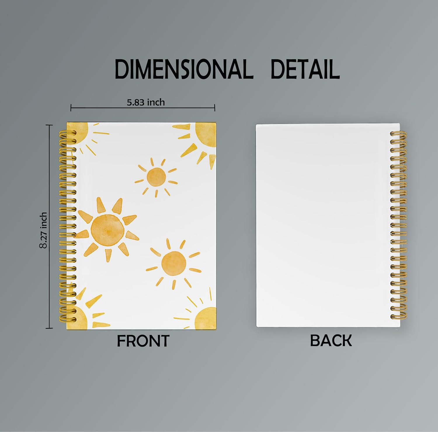 Boho Yellow Sun Sunshine Notebook Journal, Sunshine Gifts for Women, Cute Notebooks for Office, Notebooks for Work Note Taking, Spiral Notebook 5.5x8.3 with 164 Pages