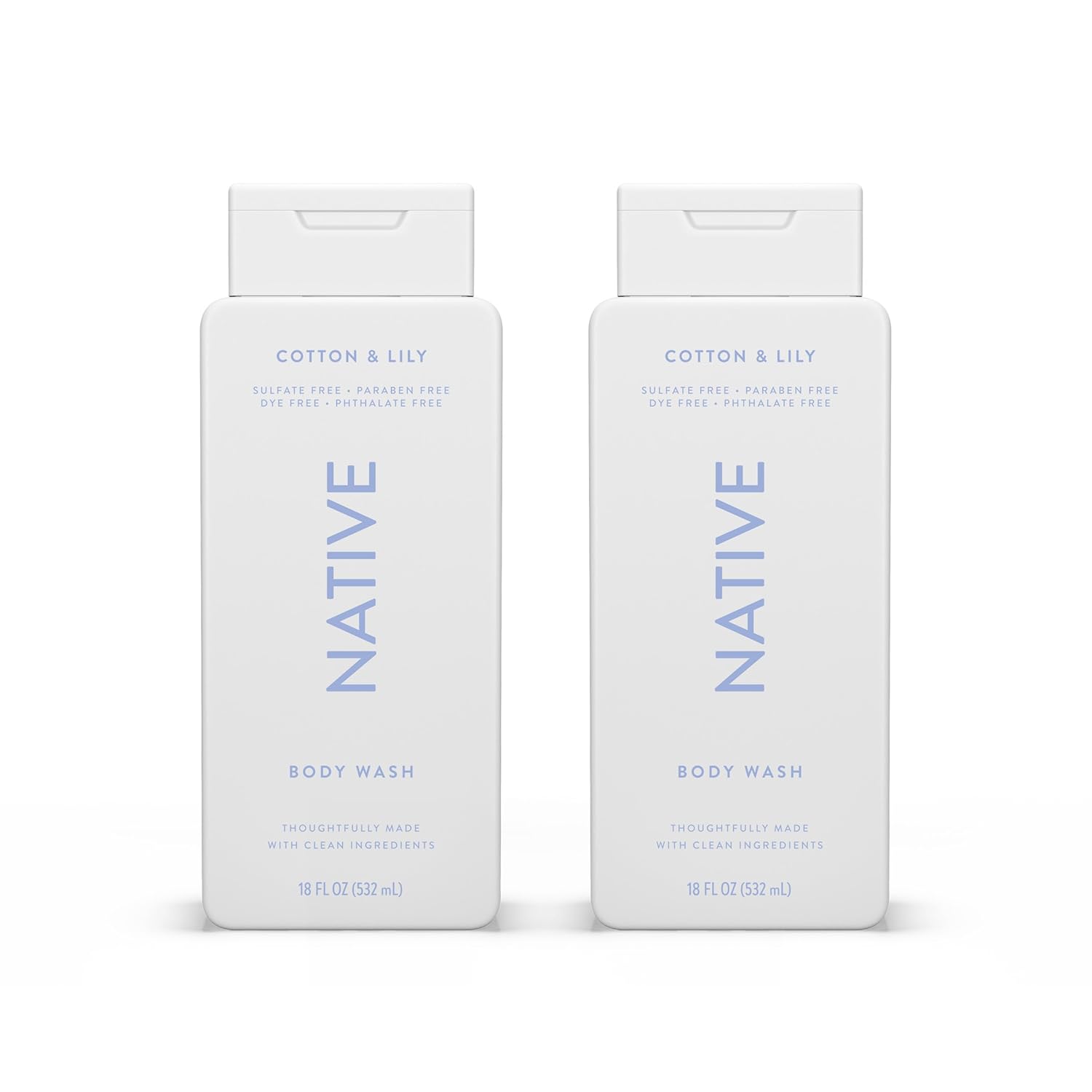 Native Body Wash Contains Naturally Derived Ingredients | For Women & Men, Sulfate, Paraben, & Dye Free Leaving Skin Soft and Hydrating | Cotton & Lily 18 oz - 2 Pk