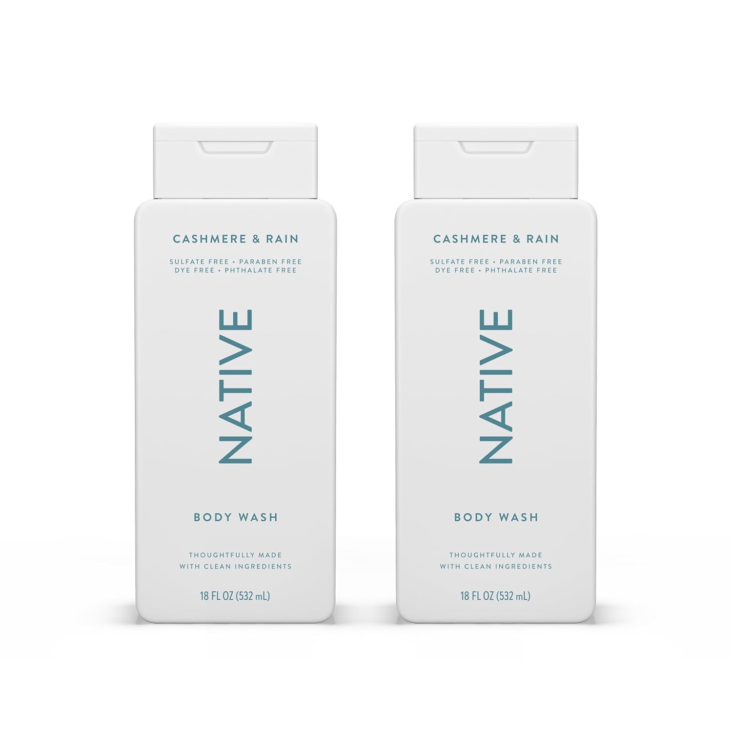 Native Body Wash Contains Naturally Derived Ingredients | For Women & Men, Sulfate, Paraben, & Dye Free Leaving Skin Soft and Hydrating | Cashmere & Rain 18 oz - 2 Pk