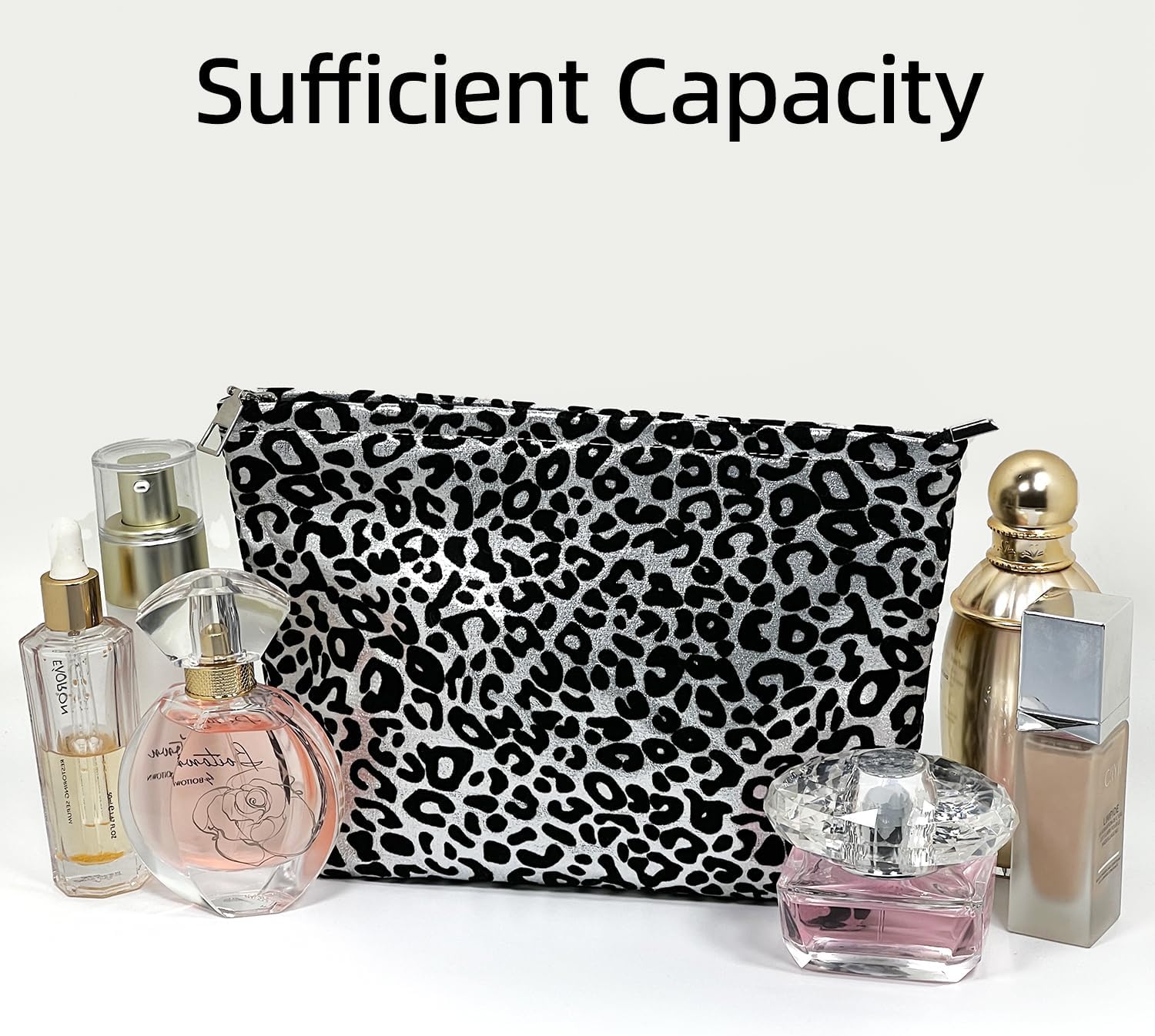 Leopard Print Makeup Bag for Women,Travel Makeup Bags for Purse, Small Makeup Pouch, Canvas Make Up Bag, Light Lining Zipper Close Comfortable Lightweight Makeup Bag, Small Cosmetic Bag