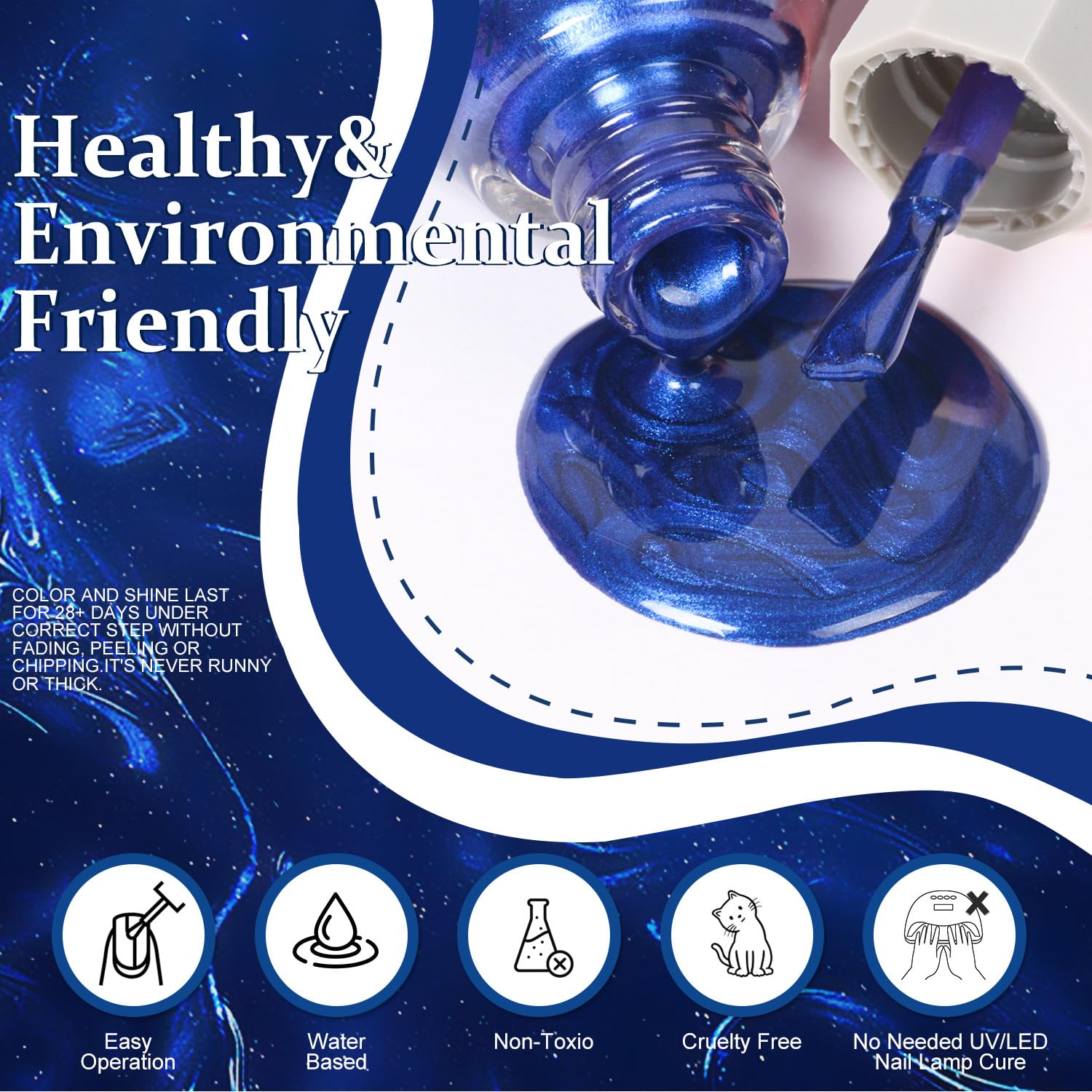 - NOTE: This nail polish is resistant to chipping and peeling, but for a longer-lasting shine, we recommend applying a top coat to keep the gloss for over 15 days!