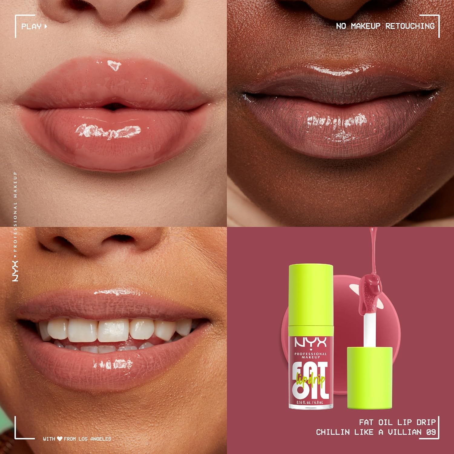 NYX PROFESSIONAL MAKEUP Fat Oil Lip Drip, Moisturizing, Shiny and Vegan Tinted Lip Gloss - Chillin Like a Villain (Pale Dusty Rose)