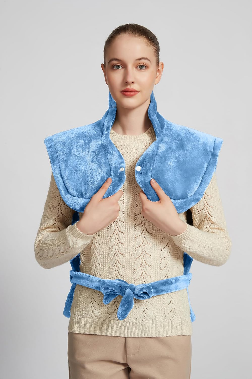 Ambershine 26"x35" XXXL King Size Neck& Shoulder& Back Heating Pad with 12 Temperature Settings& 4 Auto-Off Countdown Timers, Pain Relief for Back/Neck/Shoulder, Christmas gift for mom dad(Light Blue)