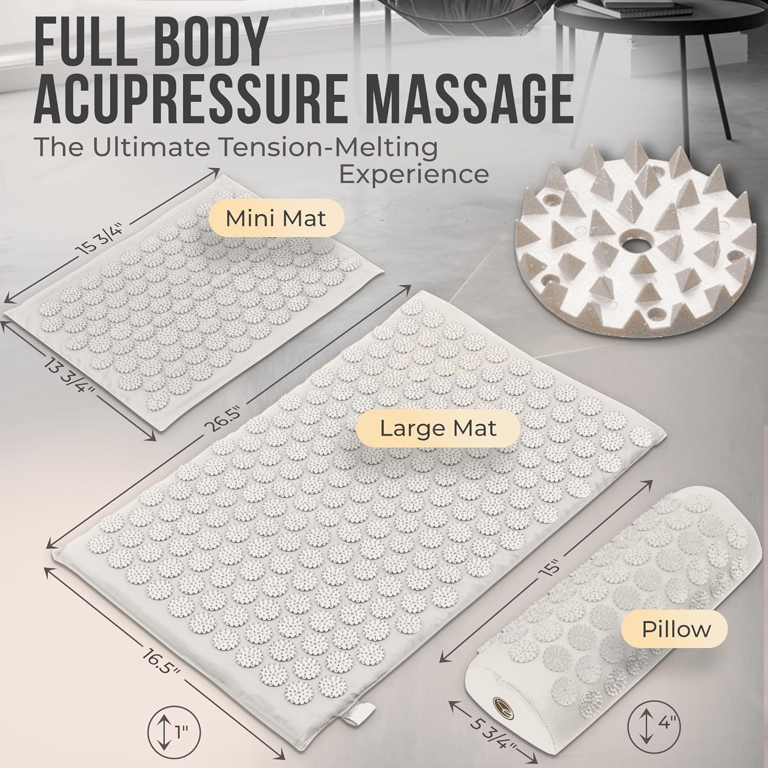 - Say Goodbye to Neck and Back Pain: Embrace holistic healing using our relaxing pressure point mats. Tailored for the modern lifestyle, our full body Acupressure set includes a neck pillow as well as an extra mini acupressure pad which can be rolled up or placed on a cushion to target hard to reach areas!