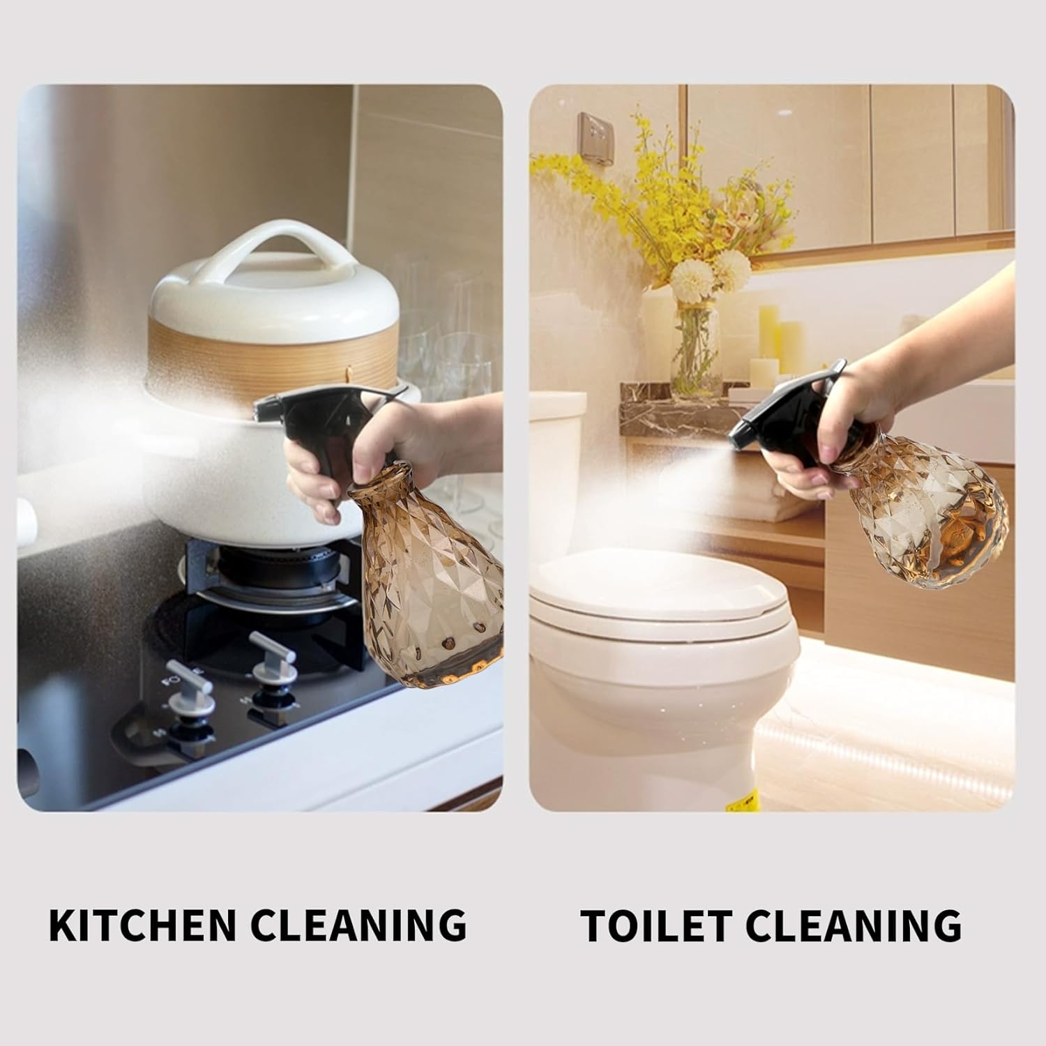- Ergonomic Design: Designed with the ergonomic push head, the spray head is easy to press and room for your fingers. The plastic spray bottle fits firmly in your hand, easy for everyday use.