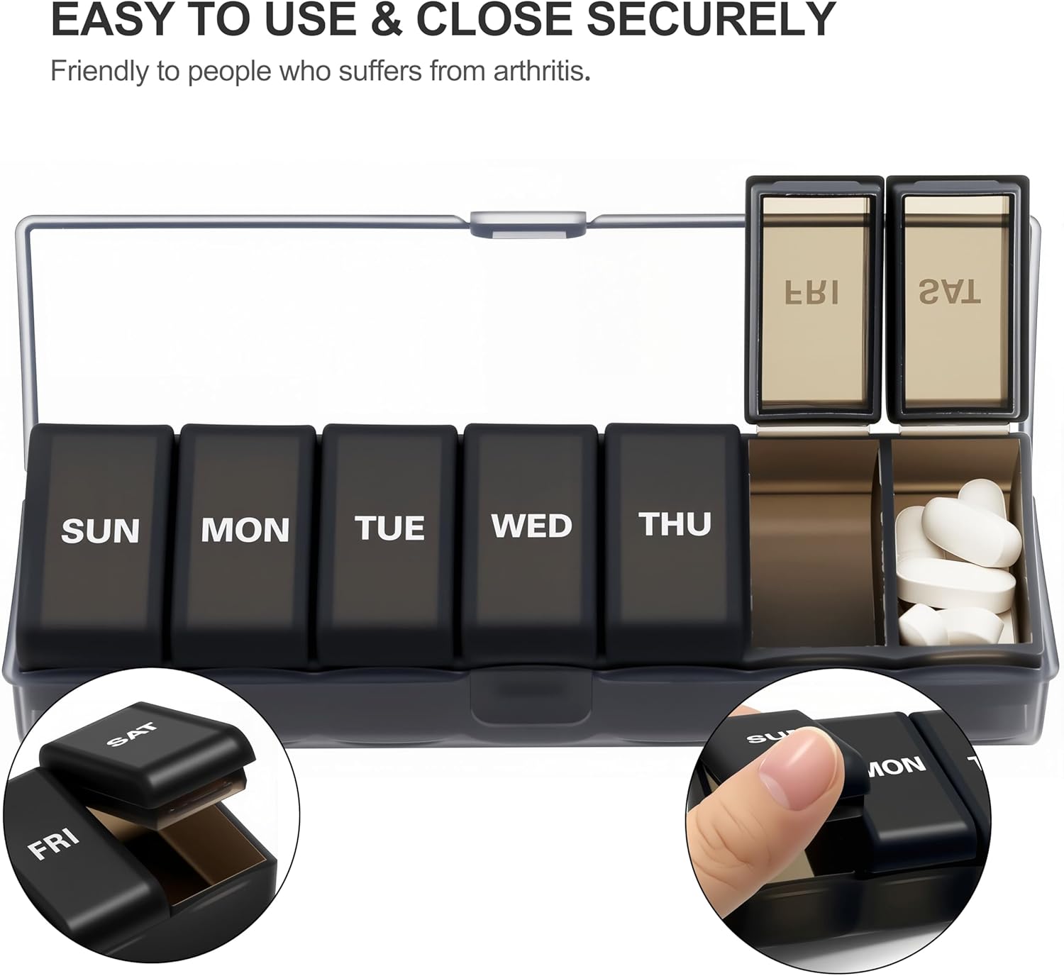 - EXCELLENT PRINTING -- the pill case organizer is printed by the updated 3D printing technology. Through the test, the letters of this 7 day pill box will not fall off after being used for more than 9000 times.