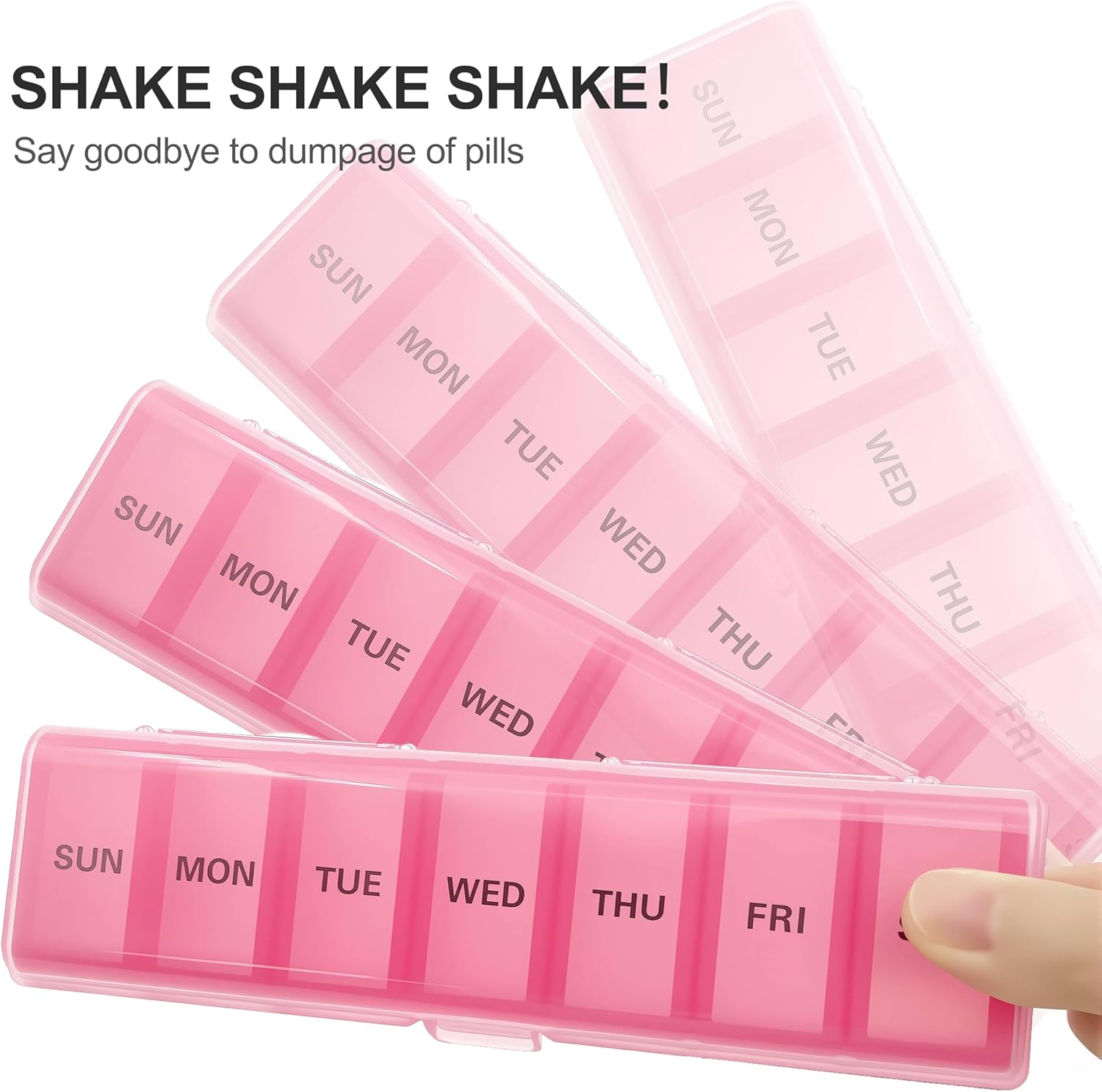 Silicone Weekly Pill Organizer 7 Day, Arthritis-Friendly Medicine Box Daily Pill Box, Large Medicine Case with Shell, Compact Travel Pill Container for Pill, Vitamin, & Fish Oil (Pink)