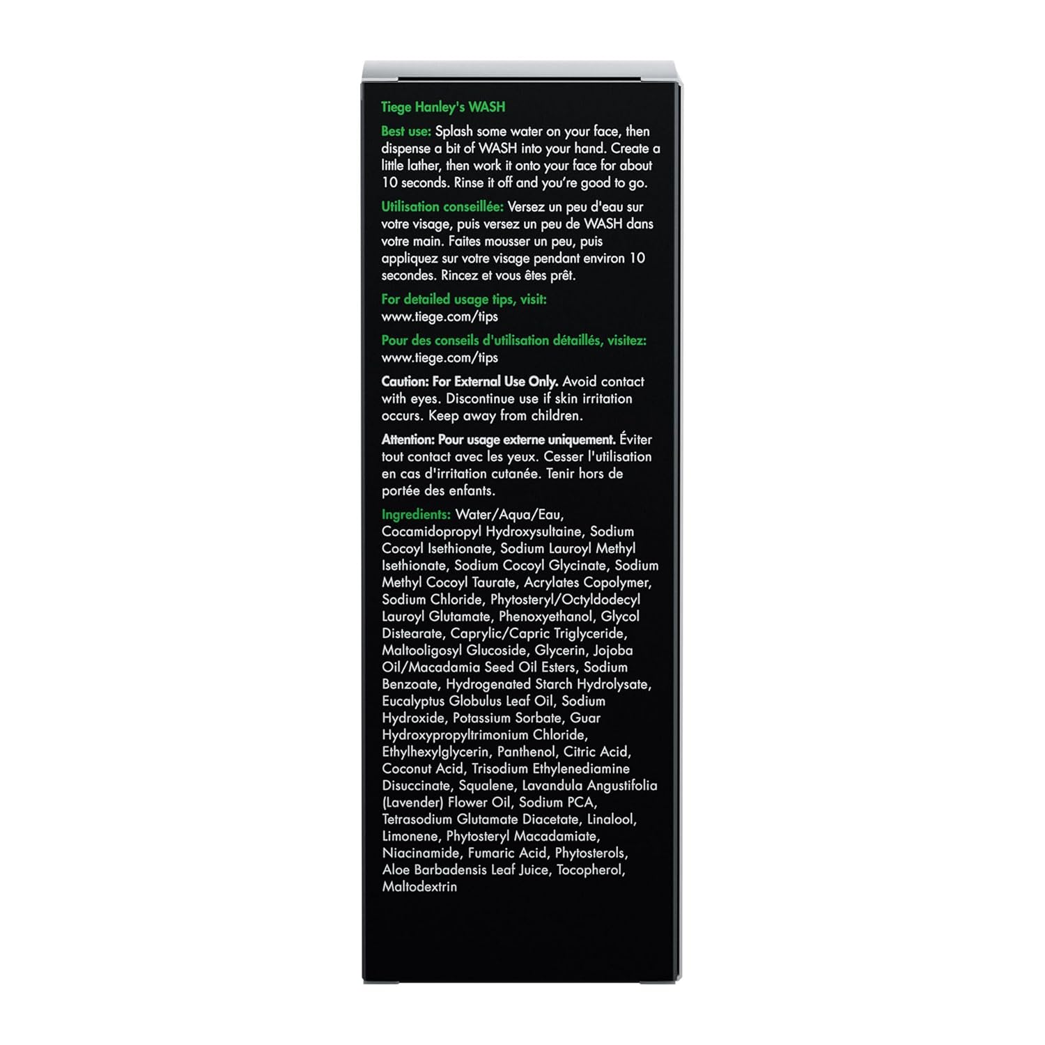 - High-Quality Facial Cleanser for Men: The Tiege Hanley WASH is a facial cleanser that rinses away oil and dirt to expose clean, healthy, and handsome skin. Our daily facial cleanser is enriched with natural ingredients making it safe for all skin types. 5.5oz.