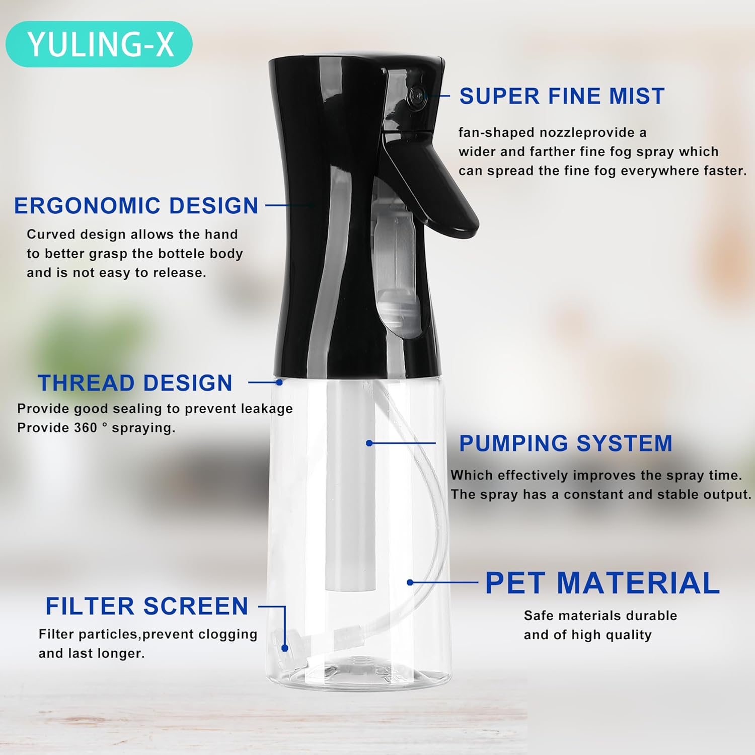 Spray Bottles For Hair, continuous spray bottle (200ml/6.8oz 2Pack) used for hair design, plants, cleaning, hair care and skin care, etc. – empty, reusable (Black&White)
