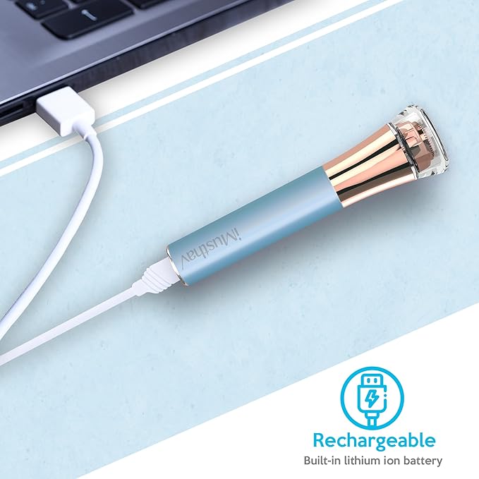 - ✨iMusthav Stylishly Portable and Compact: Resembling a lipstick, this facial hair remover device for women combines elegance with practicality. Its compact design enables effortless storage in a makeup bag, making it ideal for use at home or while traveling.