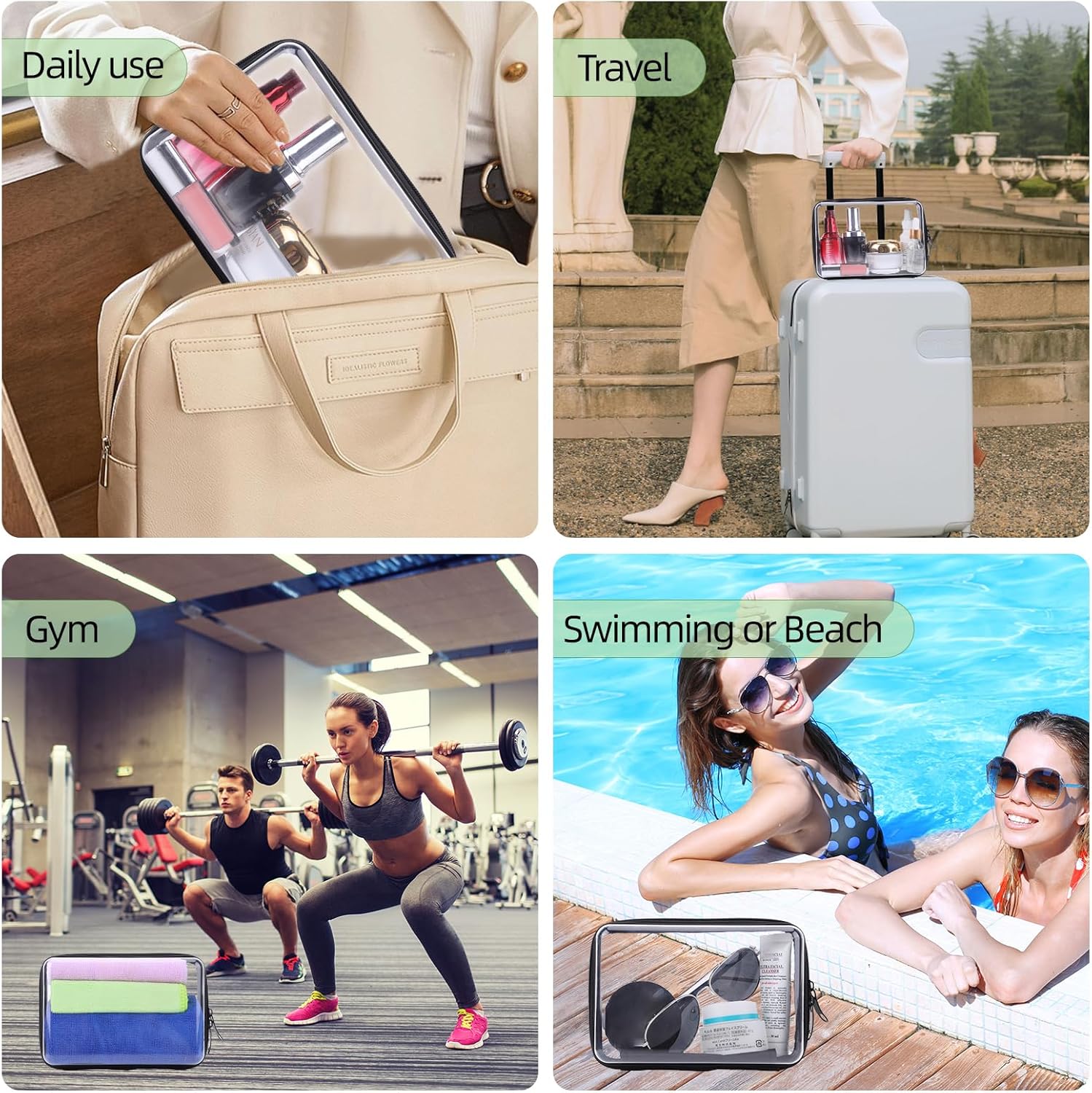 - HIGH QUALITY MATERIALS: The makeup bag clear are made from premium hard PVC material, ensuring reliability and durability. It is more durable and convenient kit ensures that your travel makeup or toiletries well organized. No longer worry about travel toiletry bag splitting easily and cosmetics spread anywhere!