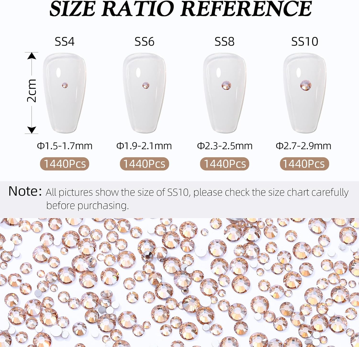 Gold Shadow Flatback Rhinestones, Glass Rhinestones for Nail Art and Craft, Glue Fix, Loose Crystal Gemstones(Gold Shadow, SS4, 1440pcs, 1.5-1.7mm)