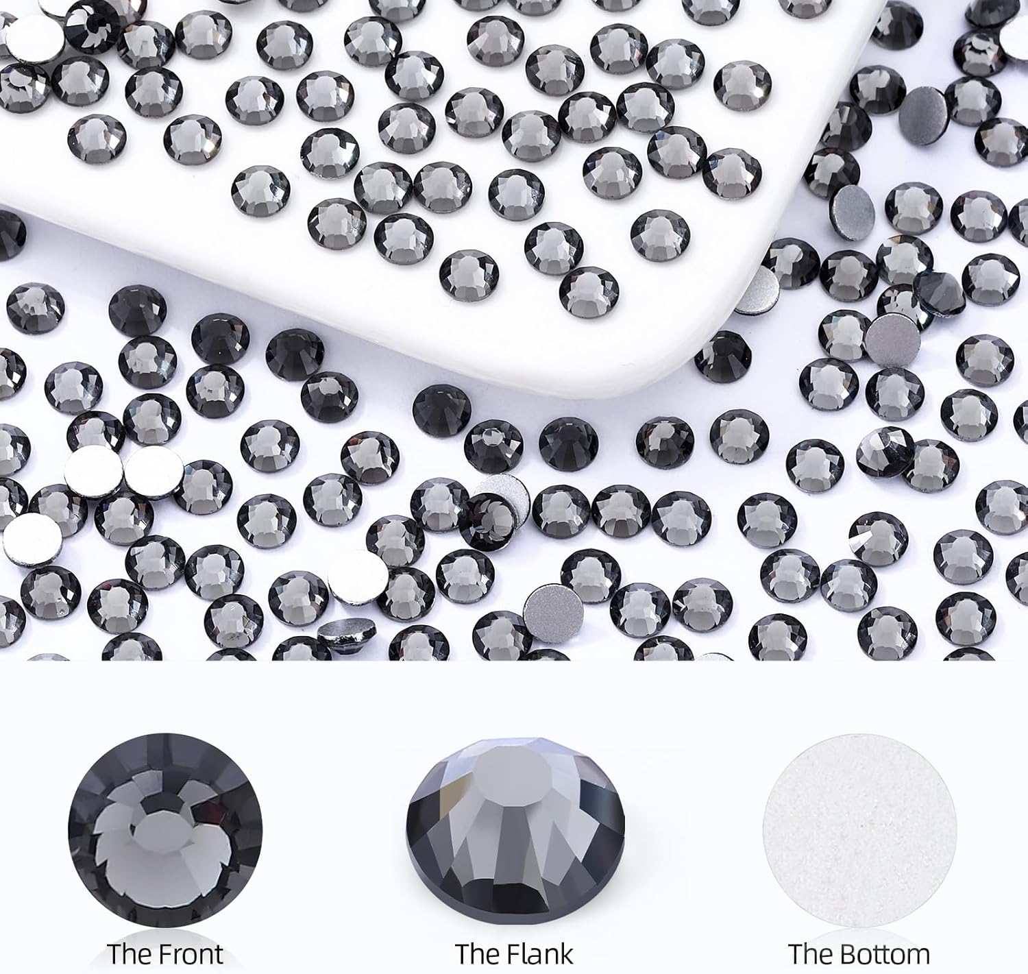 Gray Flatback Rhinestones, Glass Rhinestones for Nail Art and Craft, Glue Fix, Loose Crystal Gemstones(Gray, SS8, 1440pcs, 2.3-2.5mm)