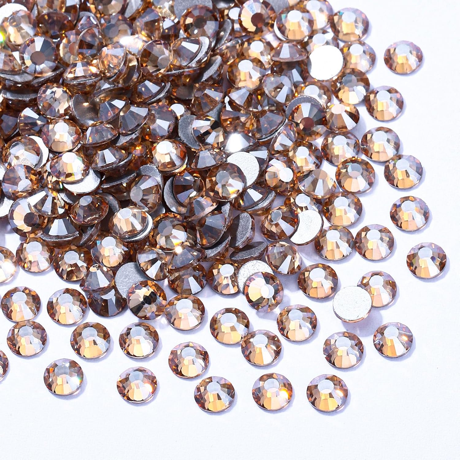 Gold Shadow Flatback Rhinestones, Glass Rhinestones for Nail Art and Craft, Glue Fix, Loose Crystal Gemstones(Gold Shadow, SS10, 1440pcs, 2.7-2.8mm)