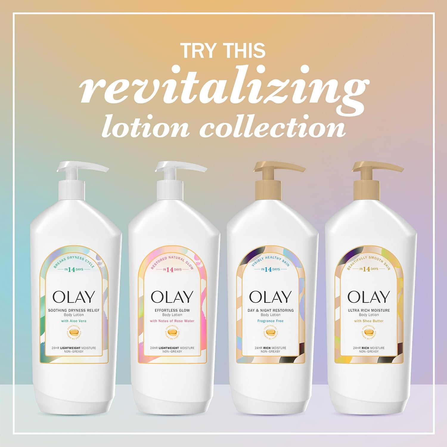 Olay Body Lotion for Women, Day & Night Restoring, 24hr Moisturizing & Deep Hydration, Absorbs Instantly, Penetrating Vitamin B3 Complex, For All Skin Types, Fragrance Free, 18 fl oz