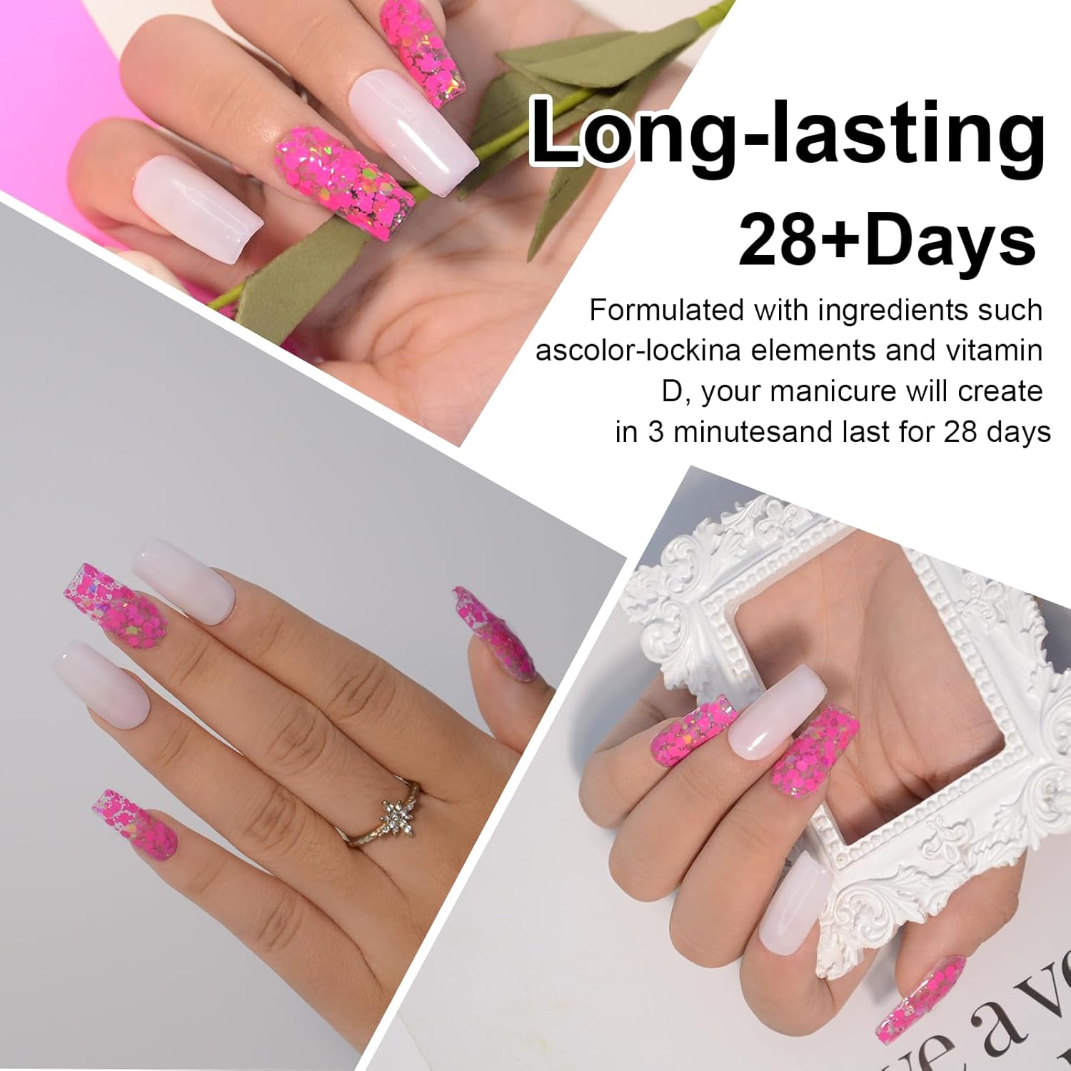 - 【LONG LASTING】Our dip powder can last from 3-5 weeks, just as strong as acrylic nails white outlasting gel nail polish. Formula is crack and chip resistant ensuring your at home DIY manicure lasts weeks to come while keeping natural nails healthy and strong.