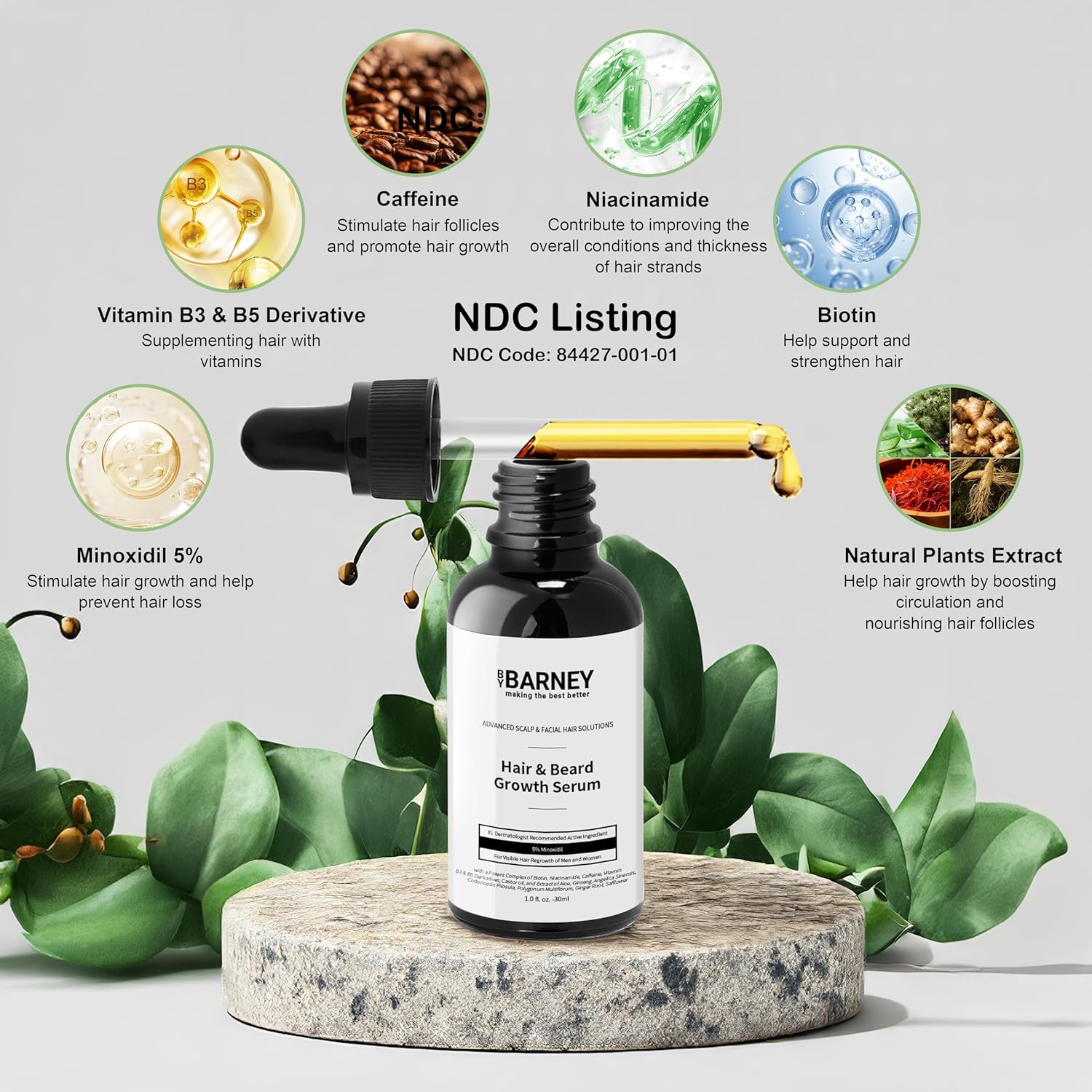 5% Minoxidil Hair and Beard Growth Serum - Natural Extracts, Biotin & Caffeine - Promotes Stronger, Thicker, Fuller Hair and Beard Growth - For Men and Women