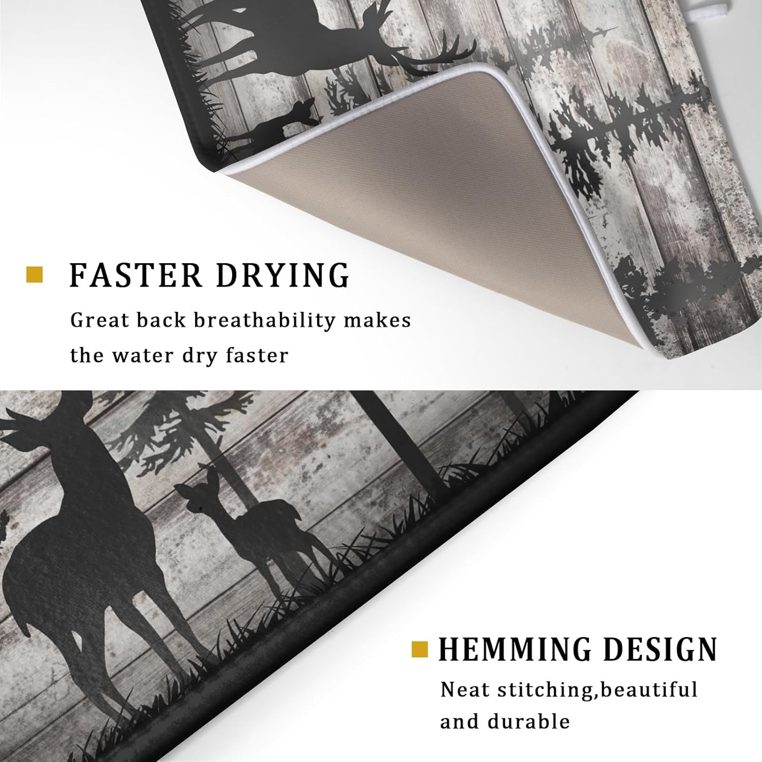 Forest Deer Dish Drying Mat Wildlife Animal Decorative Microfiber Dishes Pad 18x24 Inch Absorbent Reversible Kitchen Counter Drainer Mats