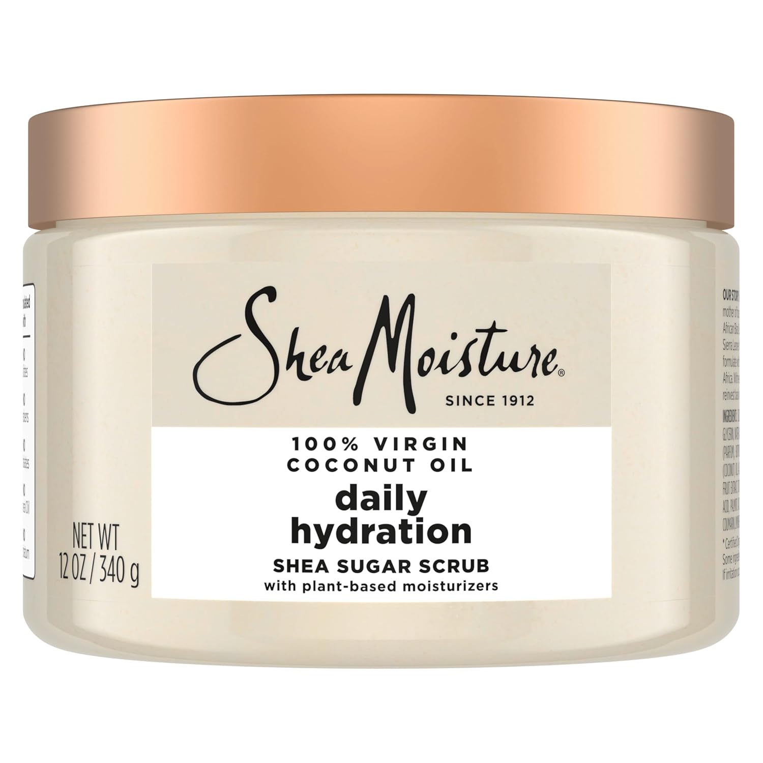 - SheaMoisture's 100% Virgin Coconut Oil Daily Hydration body scrub, designed for melanin-rich skin, replenishes and restores skin for 24 hours.