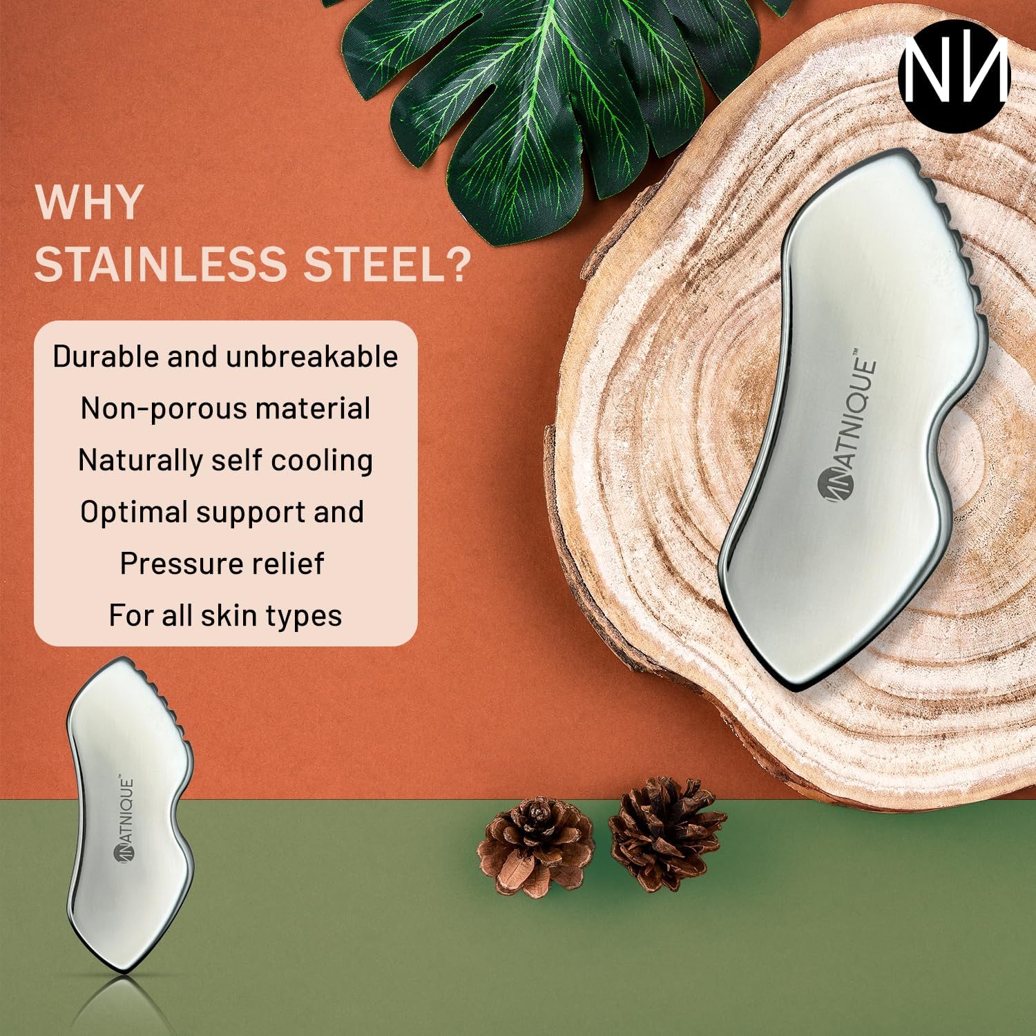 Stainless Steel Gua Sha Tool – Metal Face & Body Massage Tool for Sculpting, Puffiness, Fine Lines, Dark Circles & Cooling Relief – Board Shape with Travel Pouch
