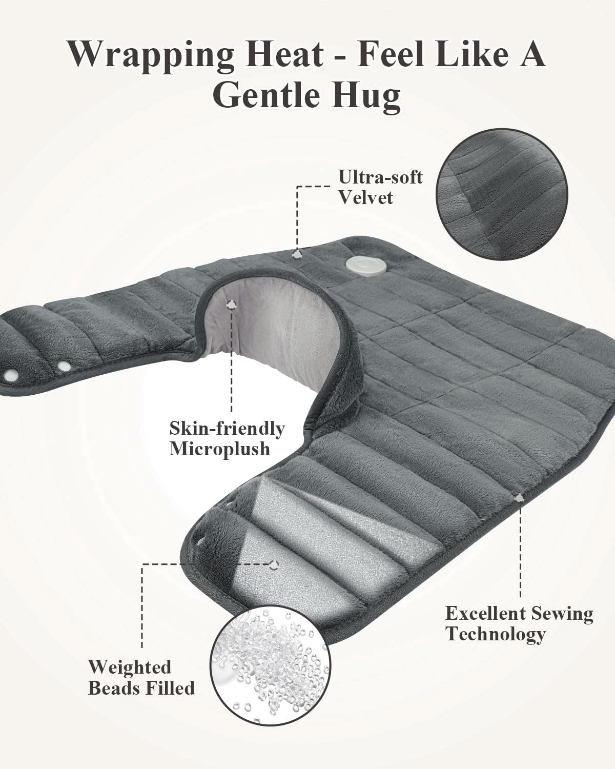 Heating Pad for Neck and Shoulders and Back, 24"x23" XL Large Electric Heated Wrap for Pain Relief, Gifts for Women Men, 2lb Weighted, 6 Heat Settings, 4 Timers, Silver Grey