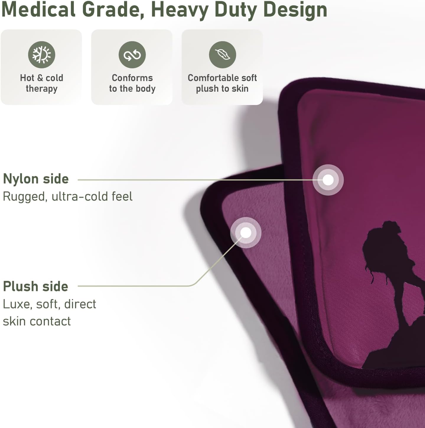 - DUAL-SIDED APPLICATION - Our hot and cold gel packs are designed so you can enjoy the best of both worlds. Use the nylon side wrapped in a thin cloth for ultra-cold therapy. For a softer and subtler experience, apply the plush side directly to the skin without frostbite.