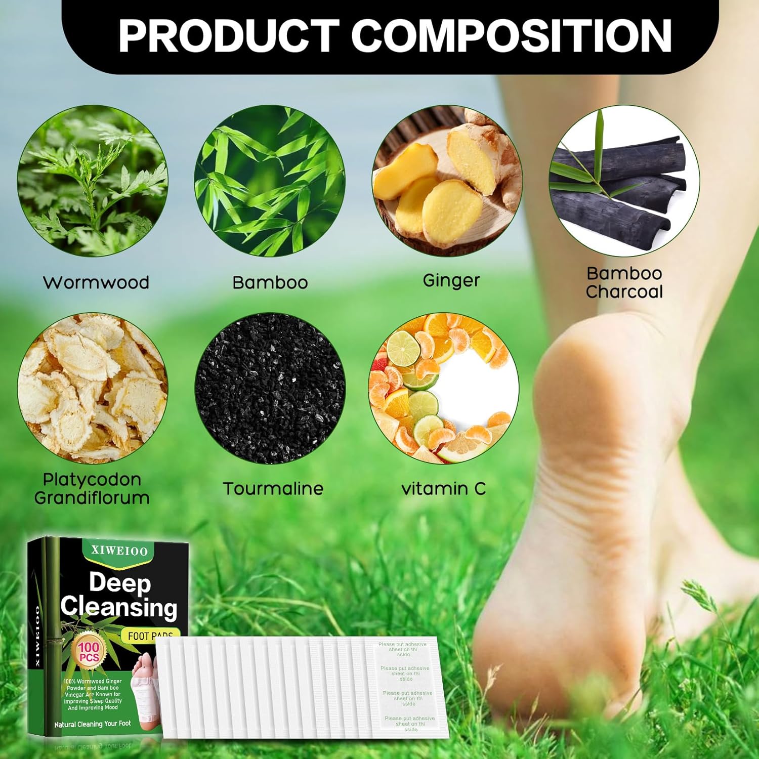 100 Foot Pads Natural Bamboo Vinegar Gingerr | Deep Cleansing Foot Paches for Stress Relief for Stress Relief, Better Rest, Feet Health Patches, Relaxing Muscles